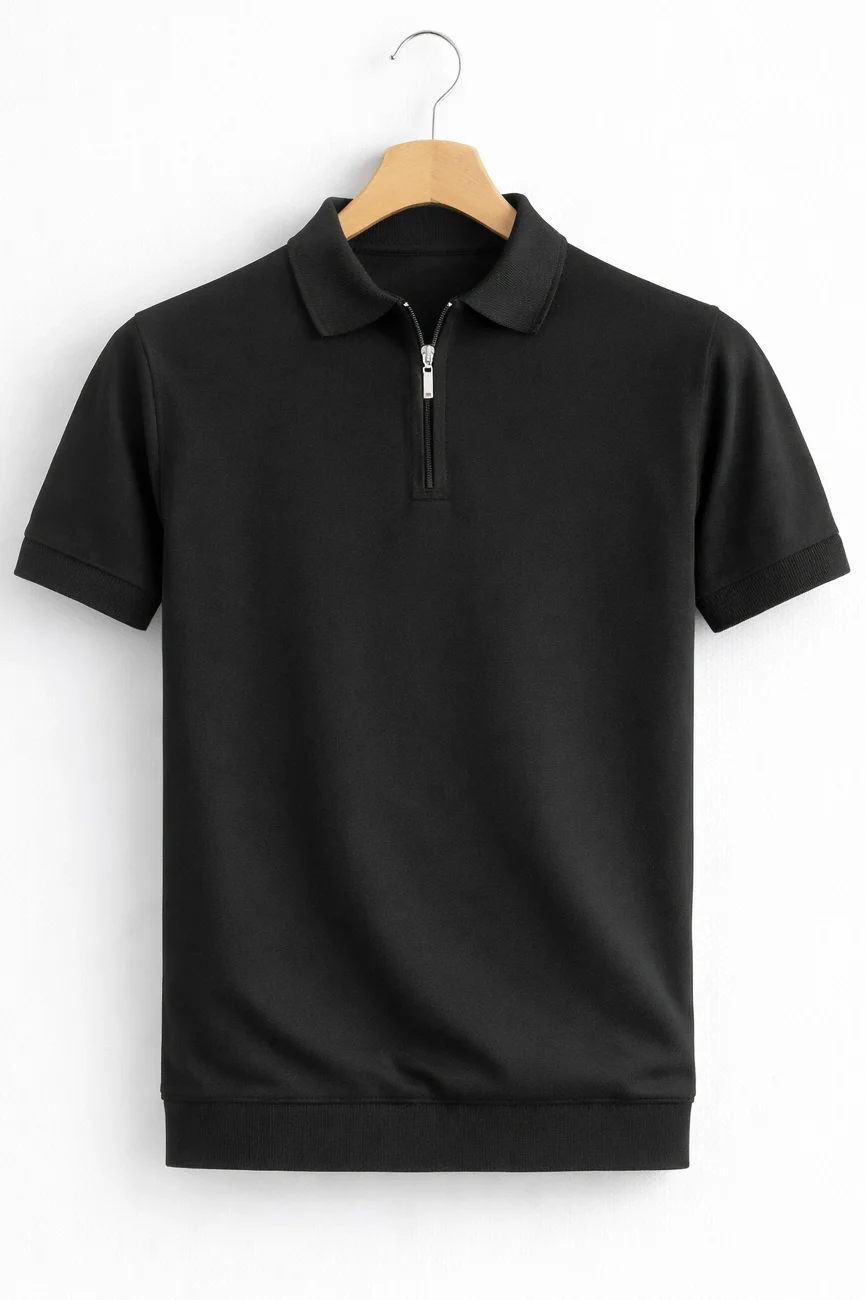ERKEK POLO YAKA DÜZ TRİKO TİŞÖRT SİYAH CD173