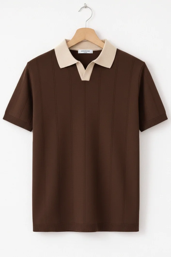 ERKEK YAKA DESENLİ TRİKO TİŞÖRT KAHVERENGİ CD165