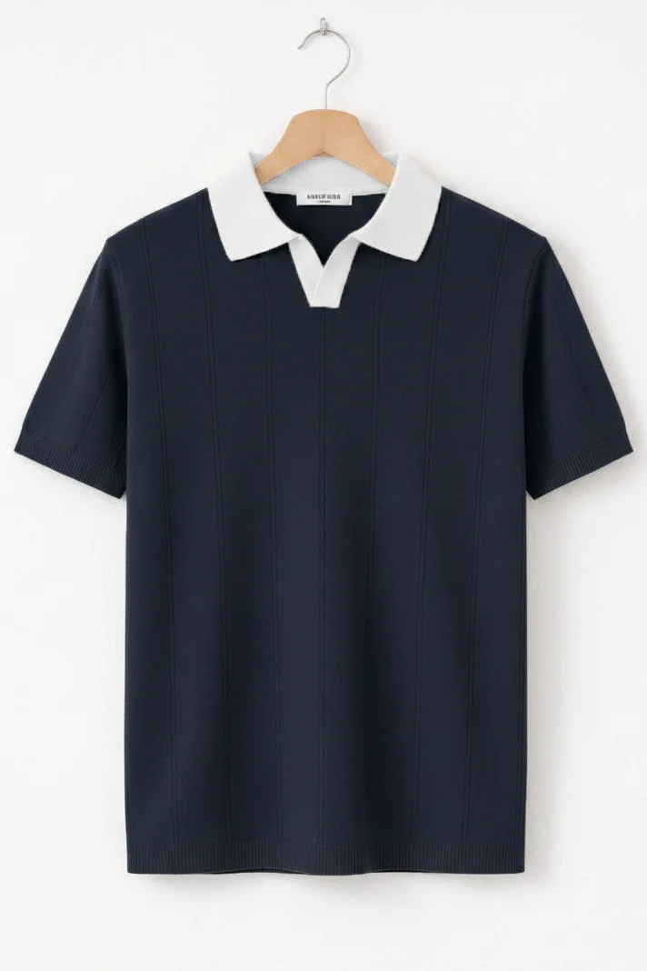ERKEK YAKA DESENLİ TRİKO TİŞÖRT LACİVERT CD165