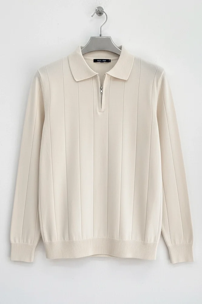 Erkek Düz Desen Fermuarlı Kazak Krem Cd134