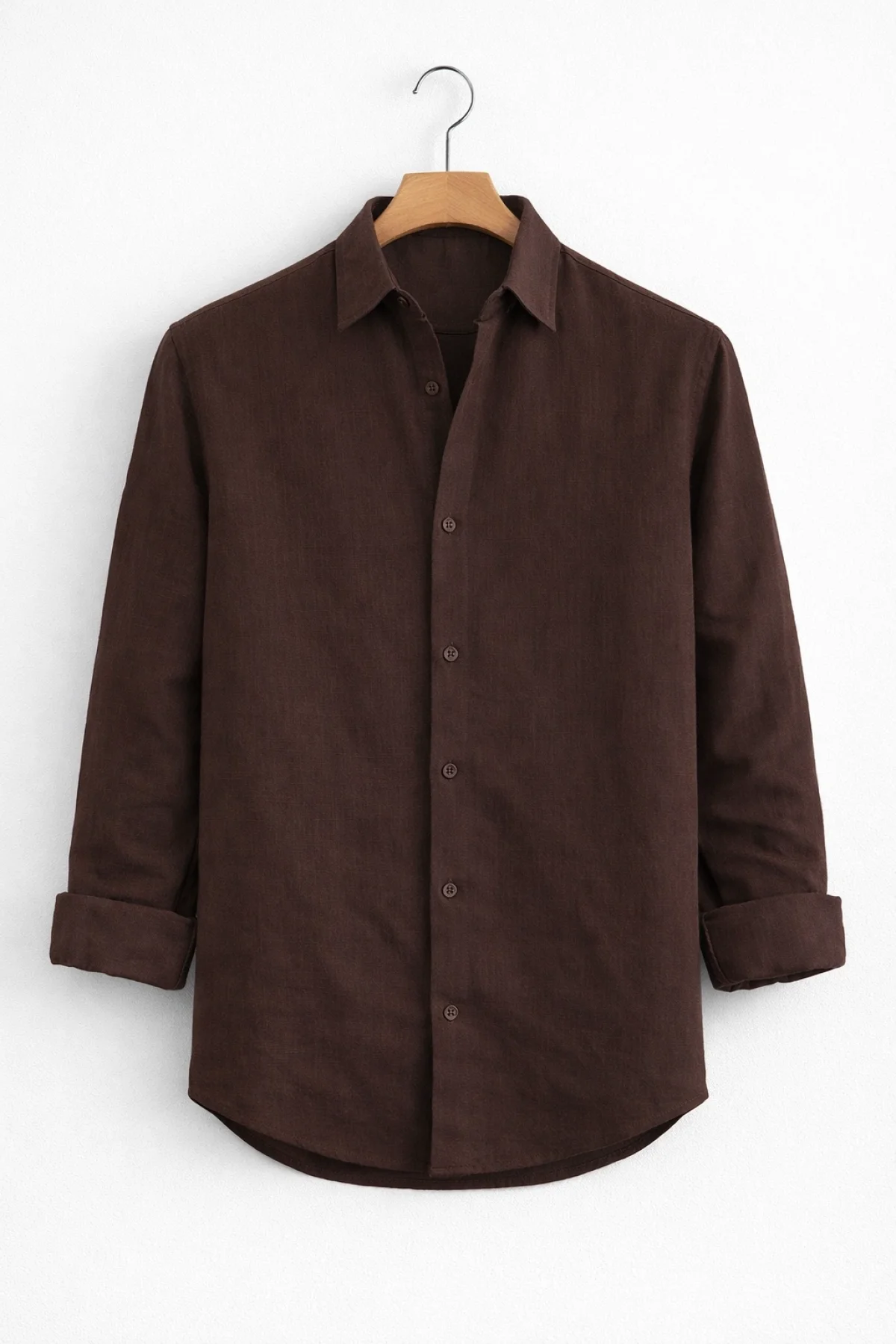 Erkek Keten Görünümlü Pamuklu Gömlek Kahverengi Cd158