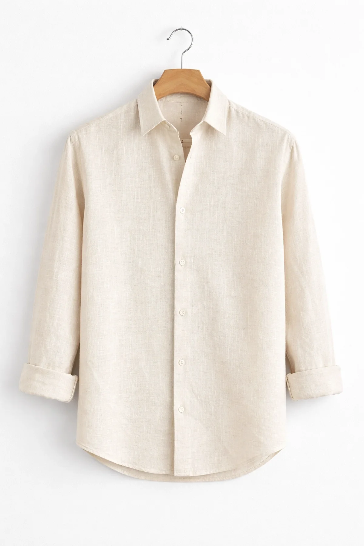 Erkek Keten Görünümlü Pamuklu Gömlek Bej Cd158