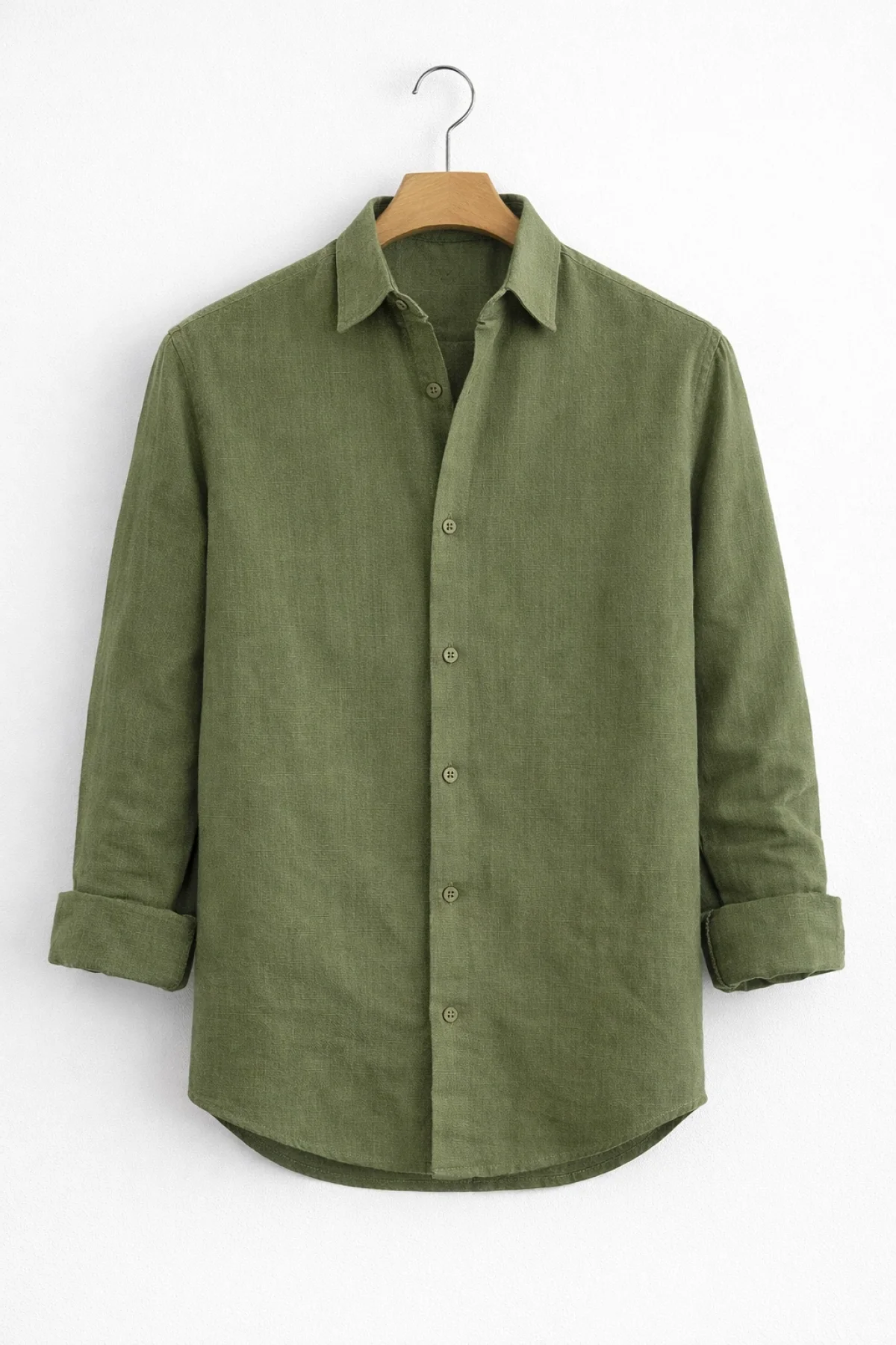 Erkek Keten Görünümlü Pamuklu Gömlek Yeşil Cd158