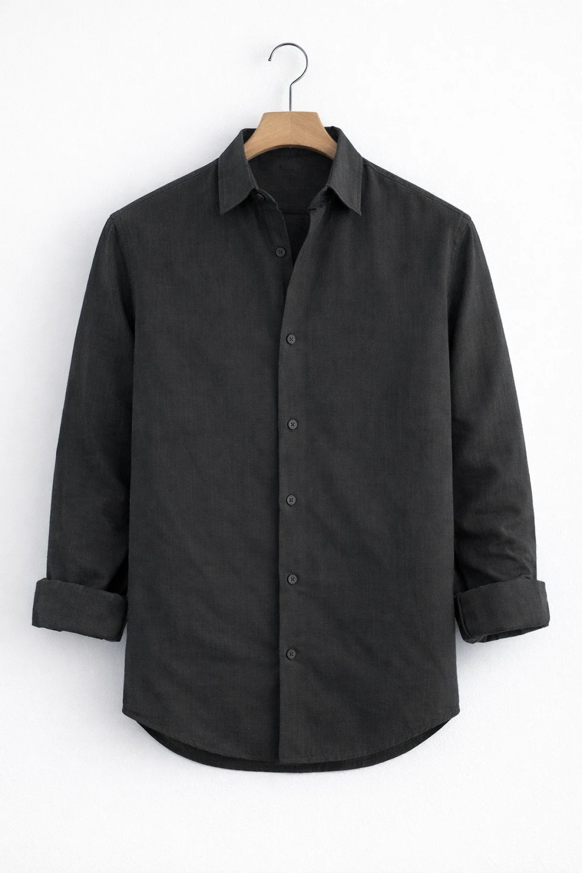 Erkek Keten Görünümlü Pamuklu Gömlek Siyah Cd158