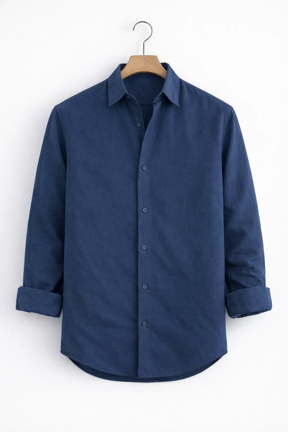 Erkek Keten Görünümlü Pamuklu Gömlek Lacivert Cd158