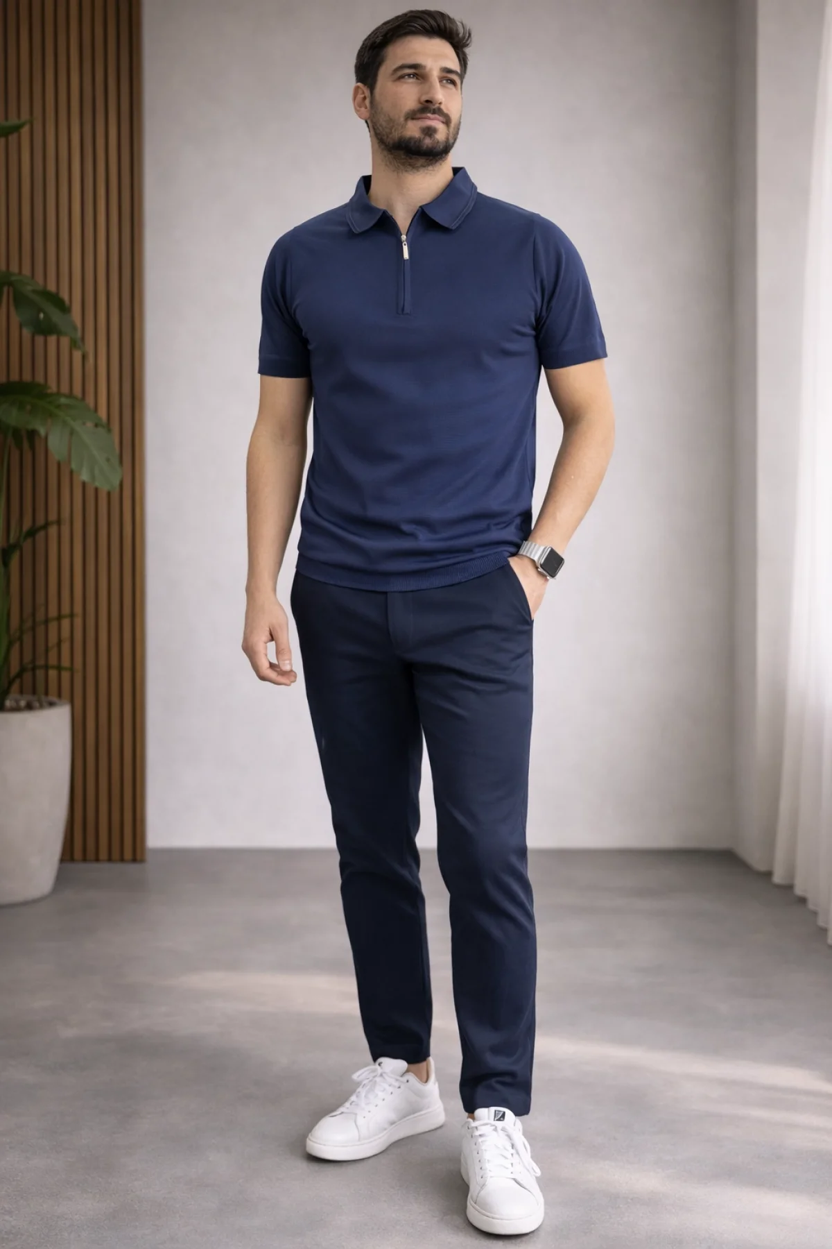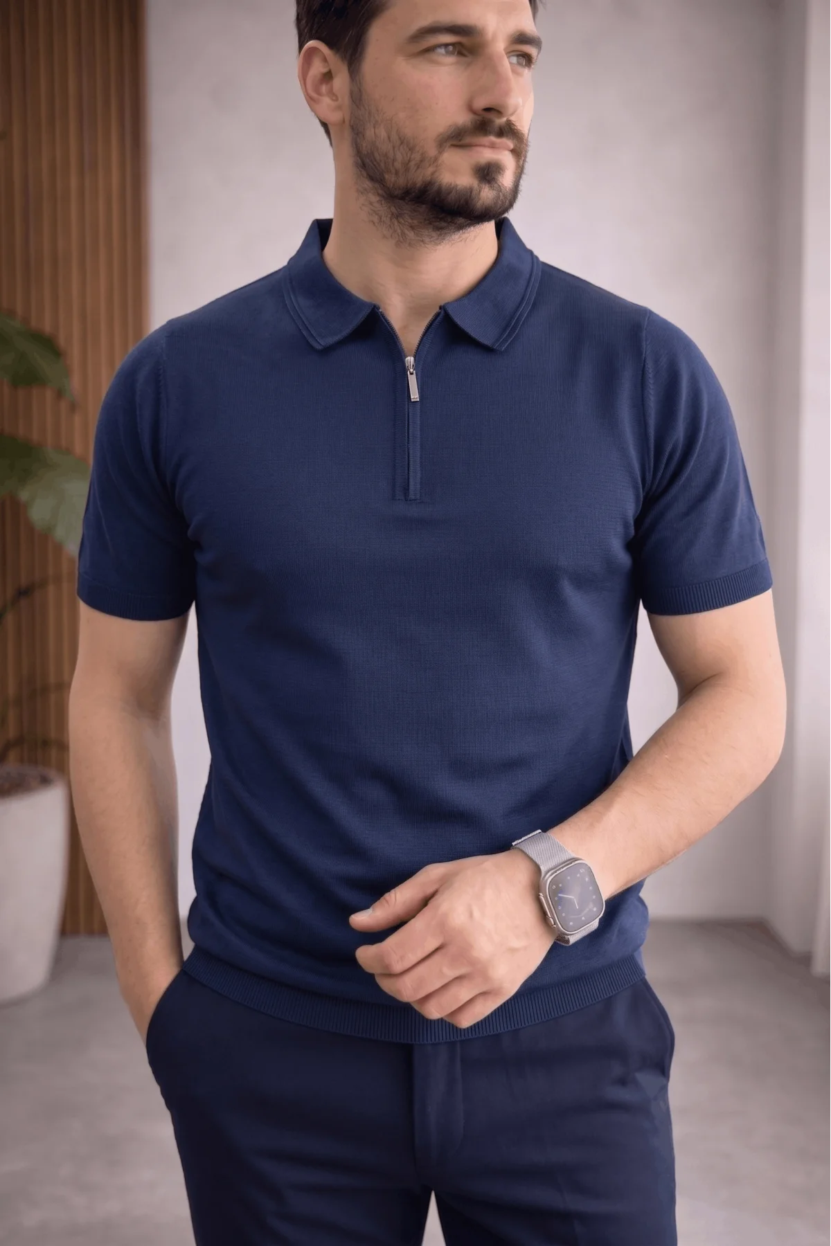 Erkek Polo Yaka Düz Triko Tişört Lacivert Cd173