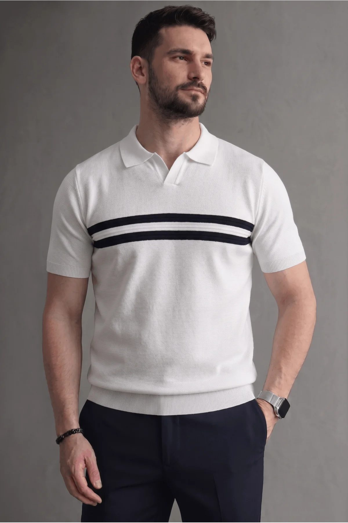 Erkek Polo Yaka Çizgili Tişört Beyaz Cd177