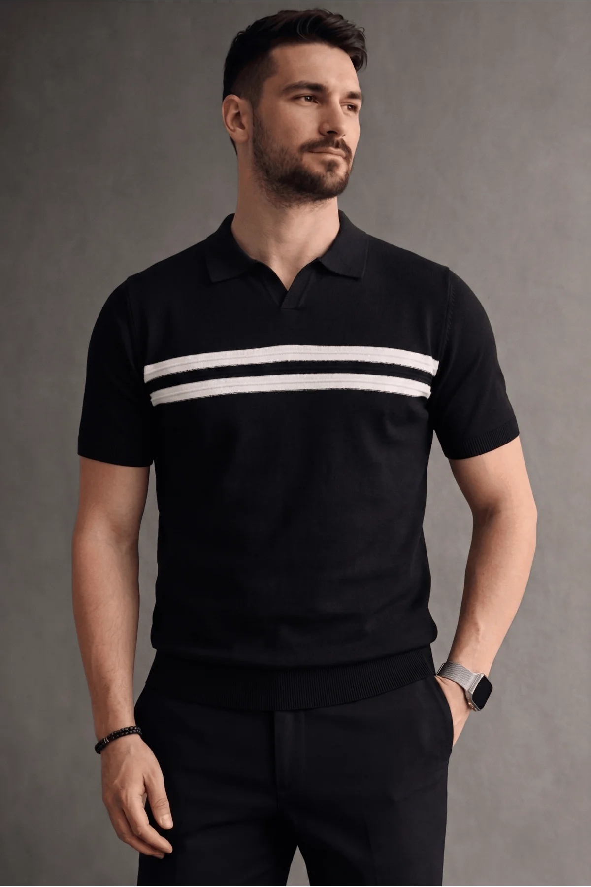 Erkek Polo Yaka Çizgili Tişört Siyah Cd177