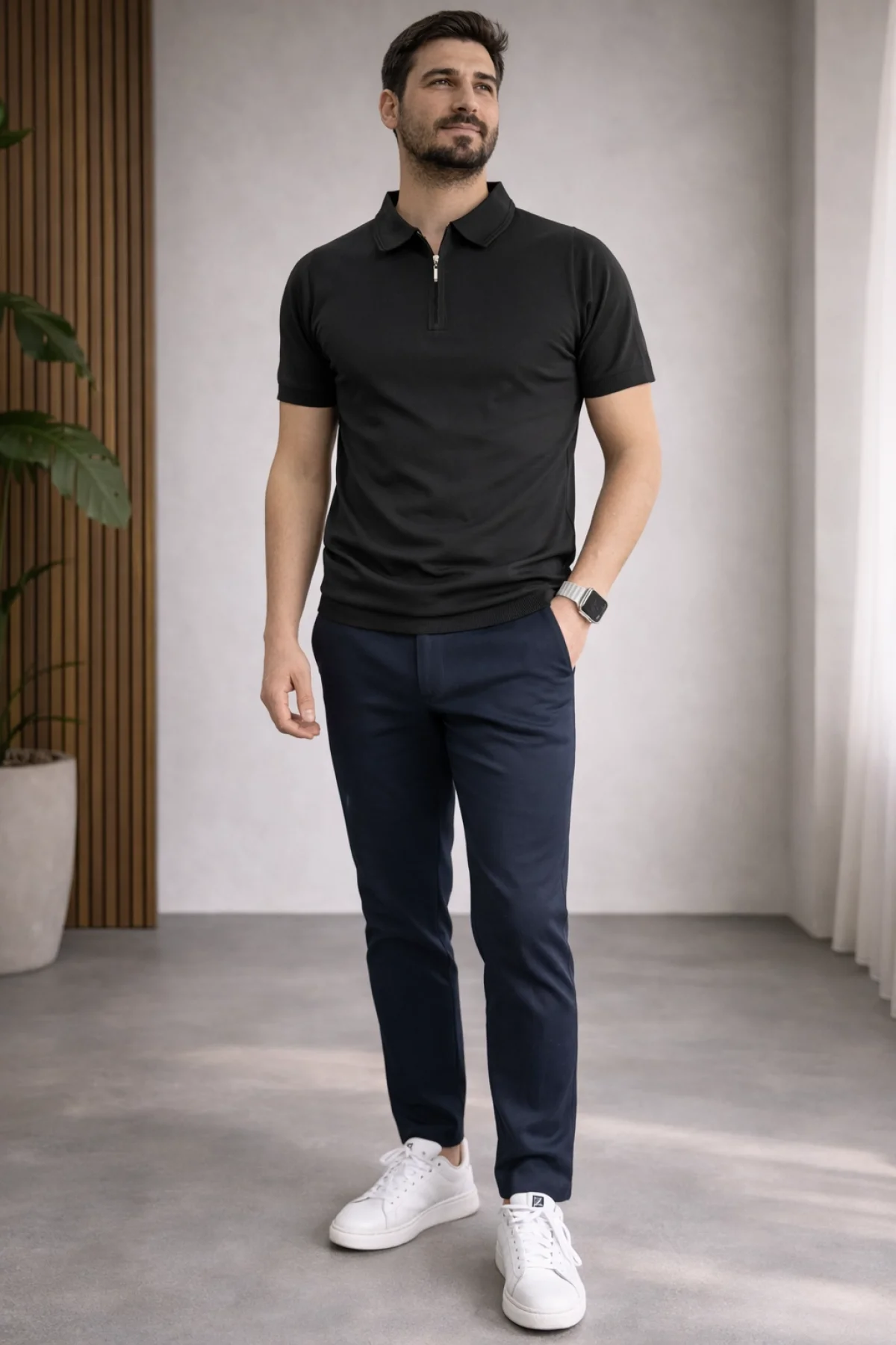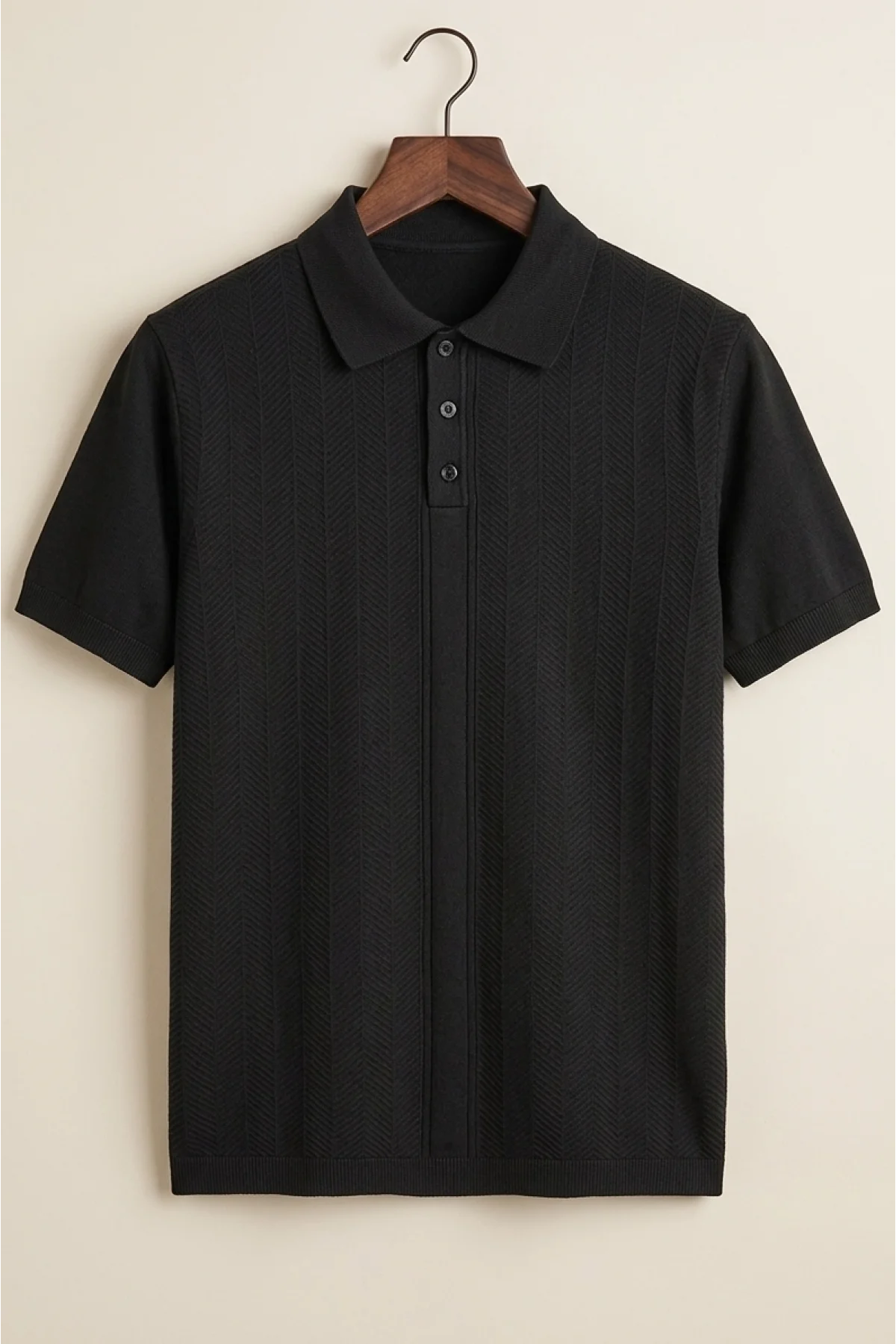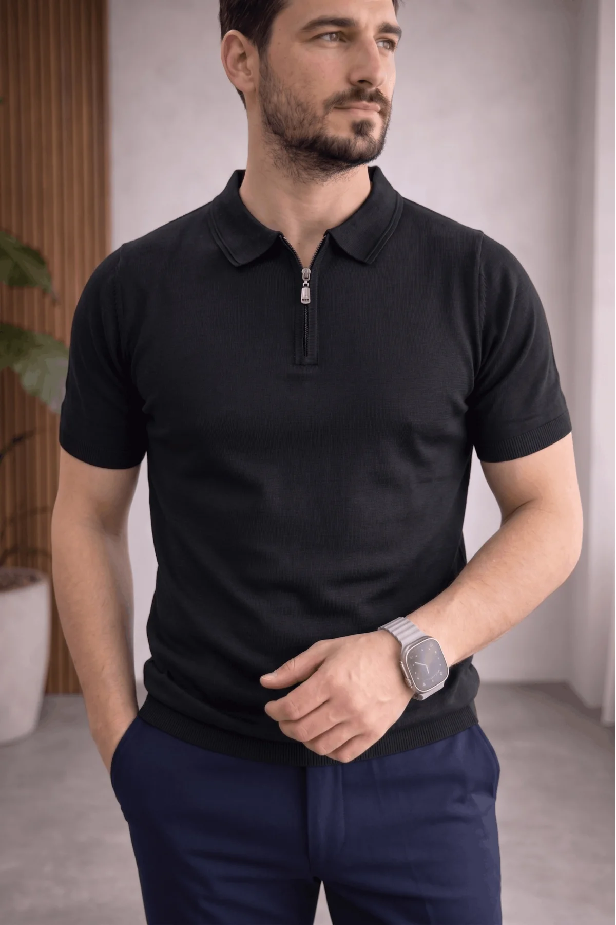 Erkek Polo Yaka Düğmeli Triko Tişört Siyah Cd172