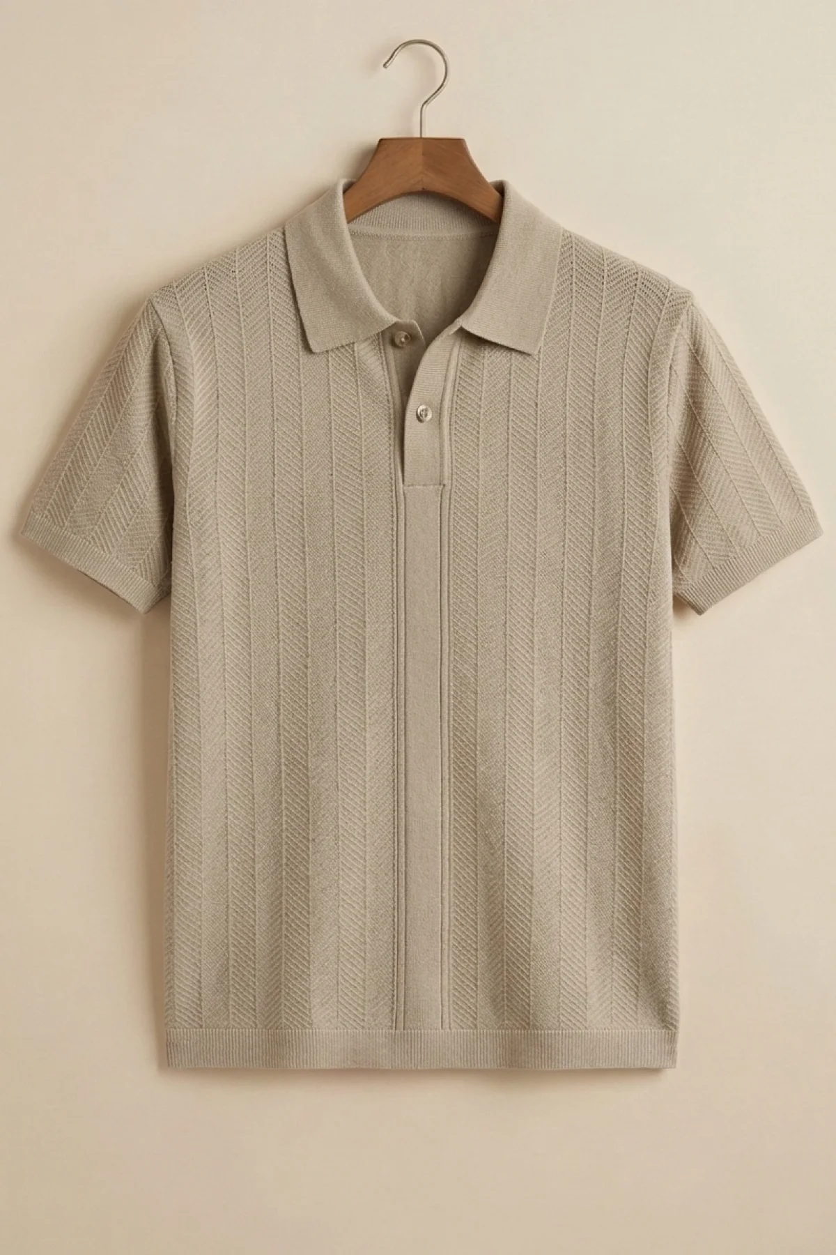Erkek Polo Yaka Düğmeli Triko Tişört Vizon Cd172