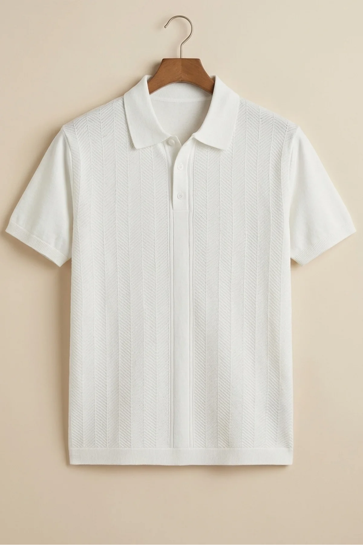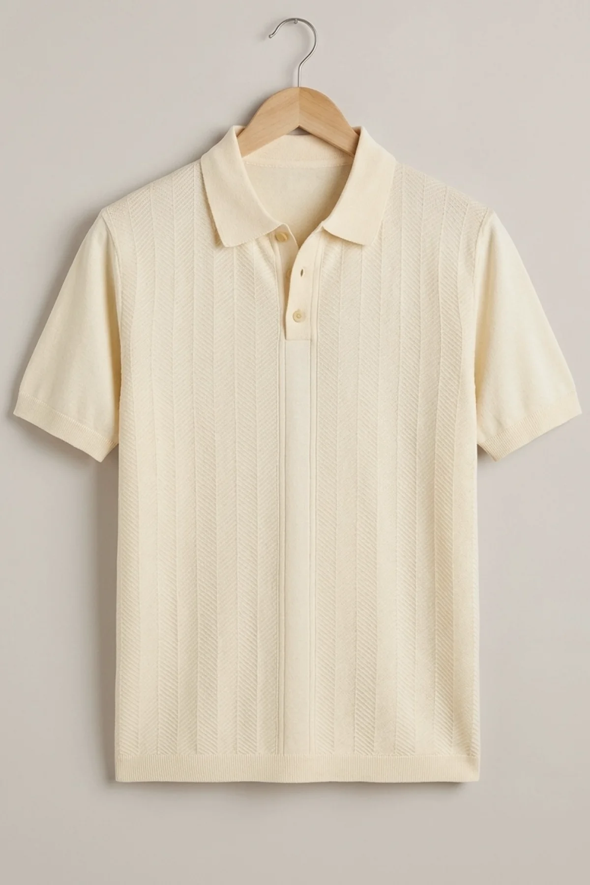 Erkek Polo Yaka Düğmeli Triko Tişört Krem Cd172