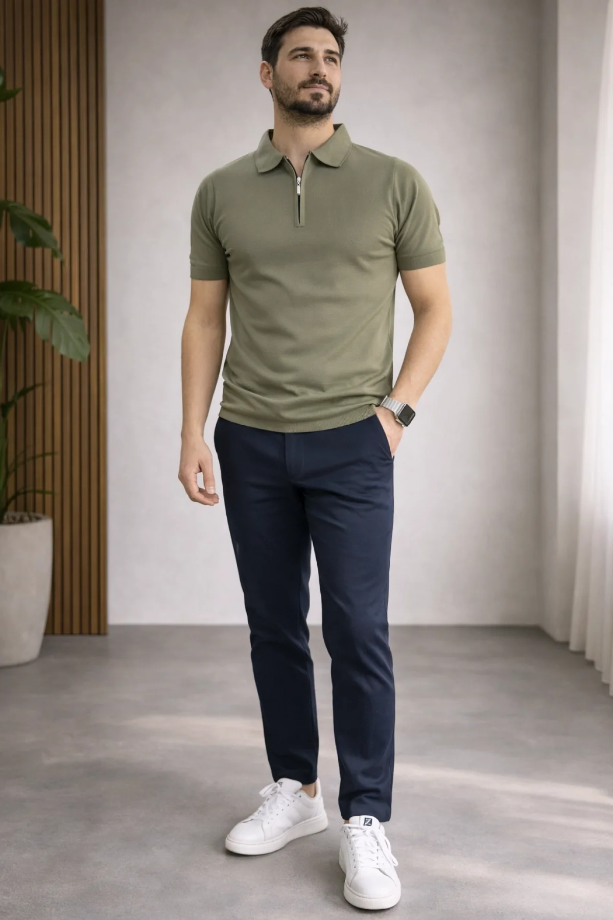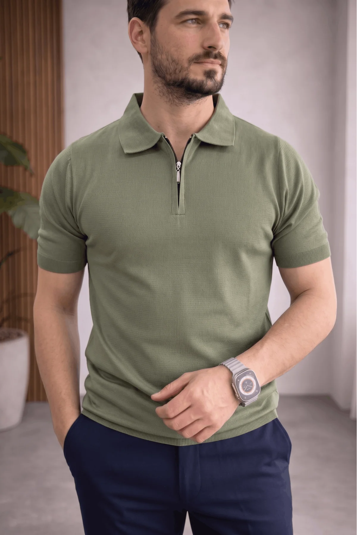 Erkek Polo Yaka Düğmeli Triko Tişört Yeşil Cd172