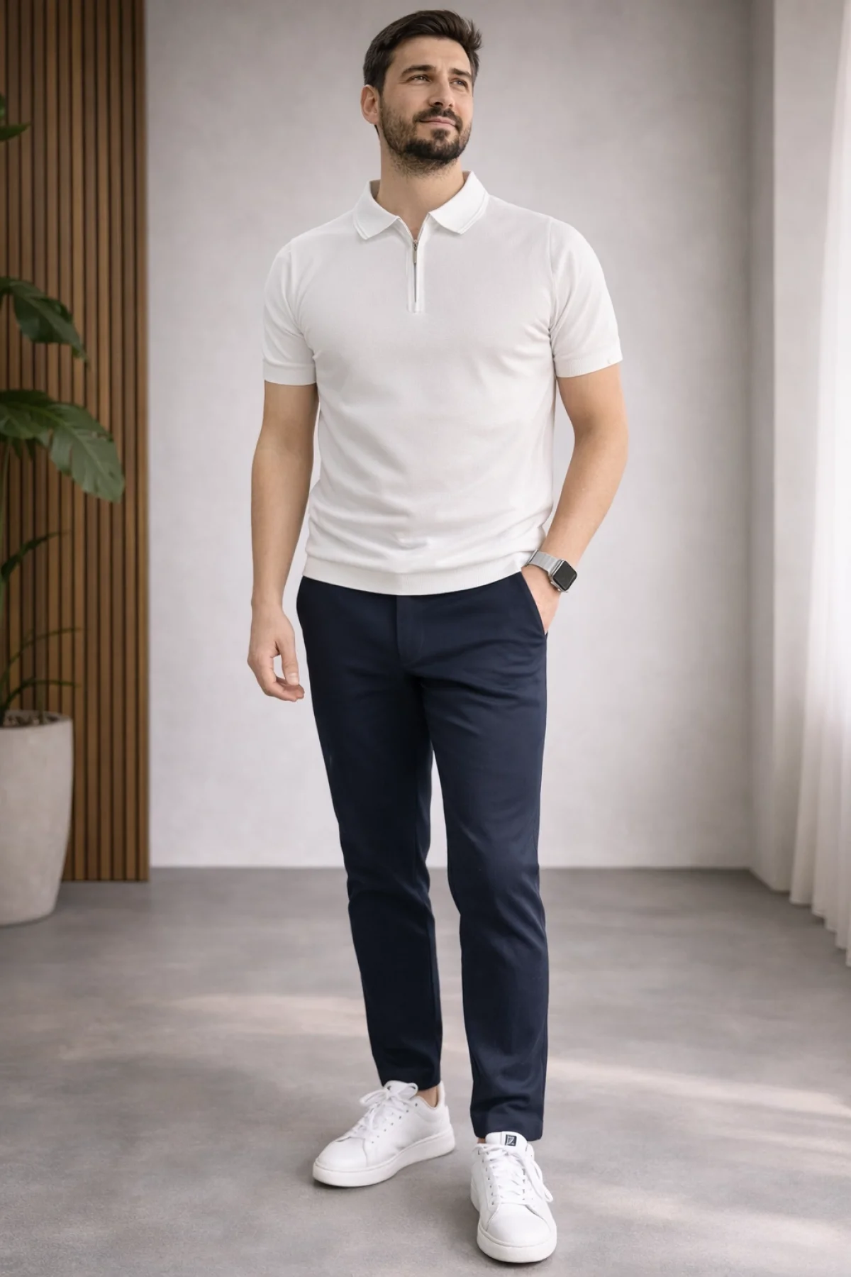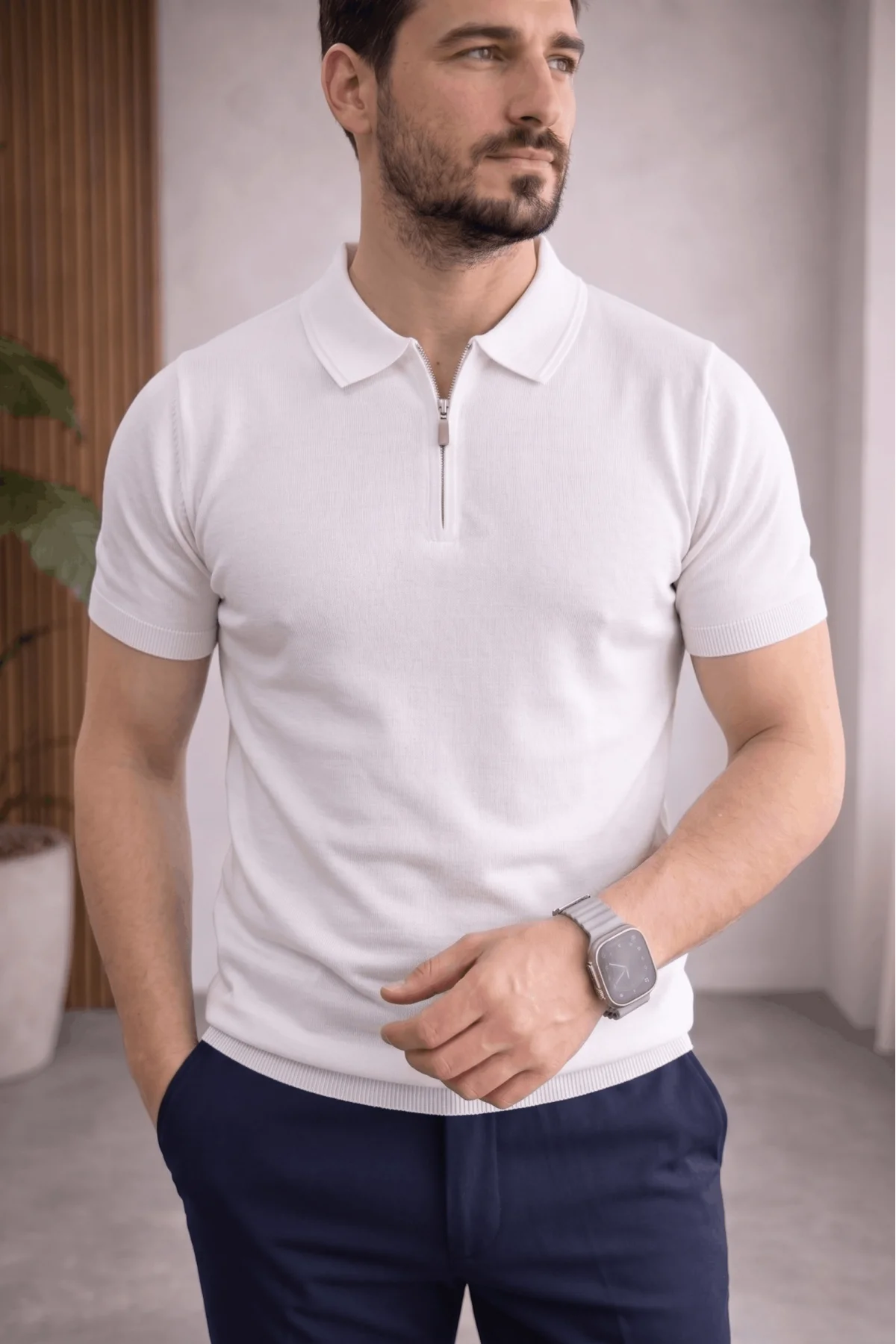 Erkek Polo Yaka Düz Triko Tişört Beyaz Cd173