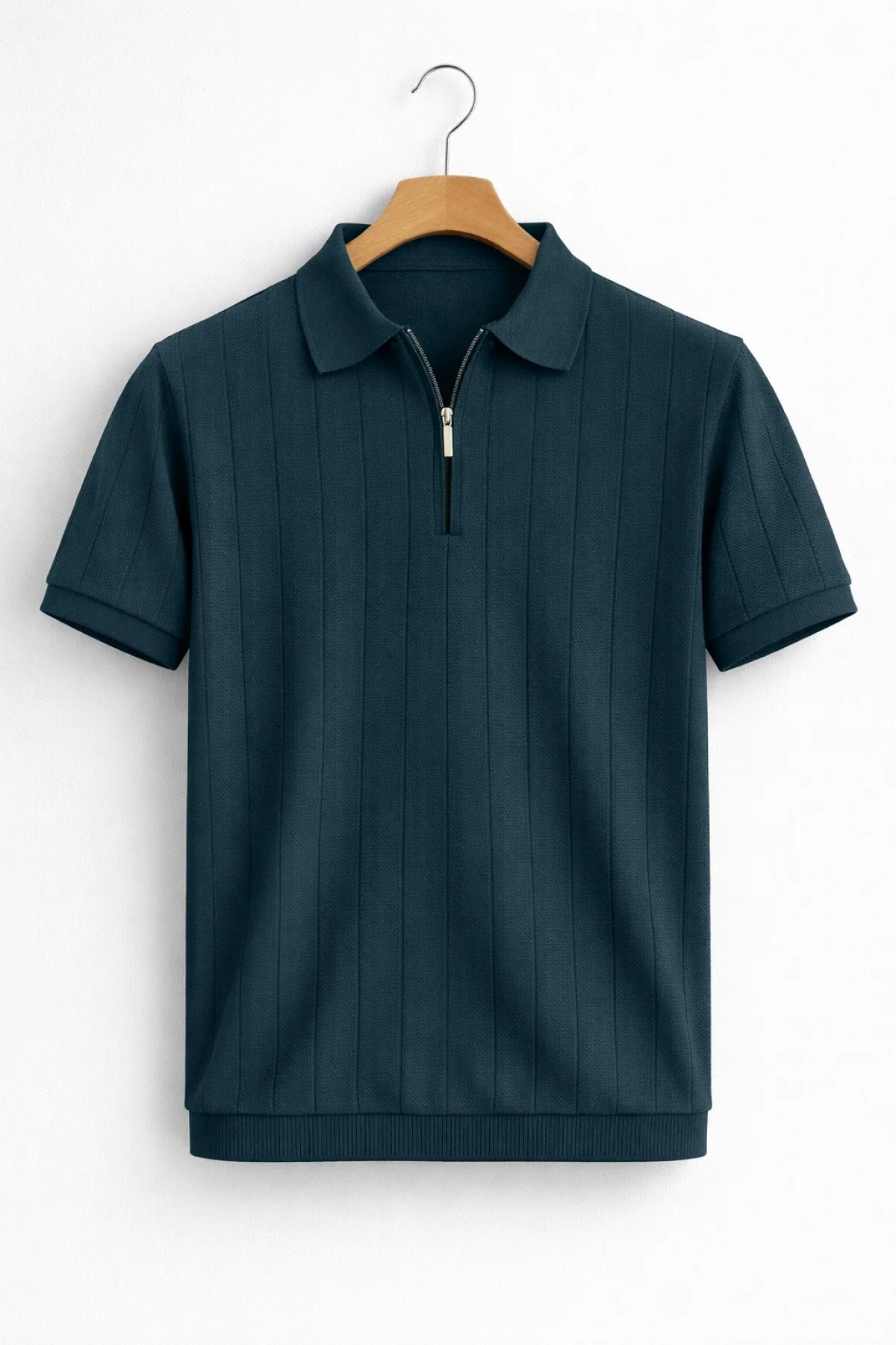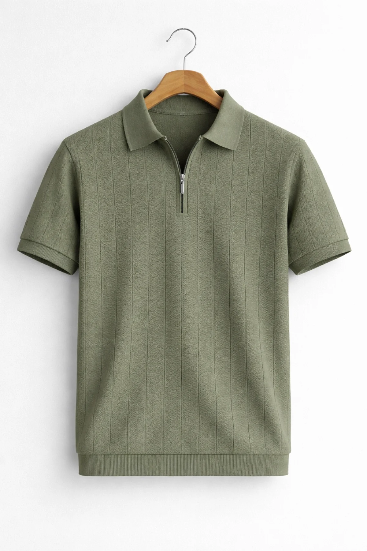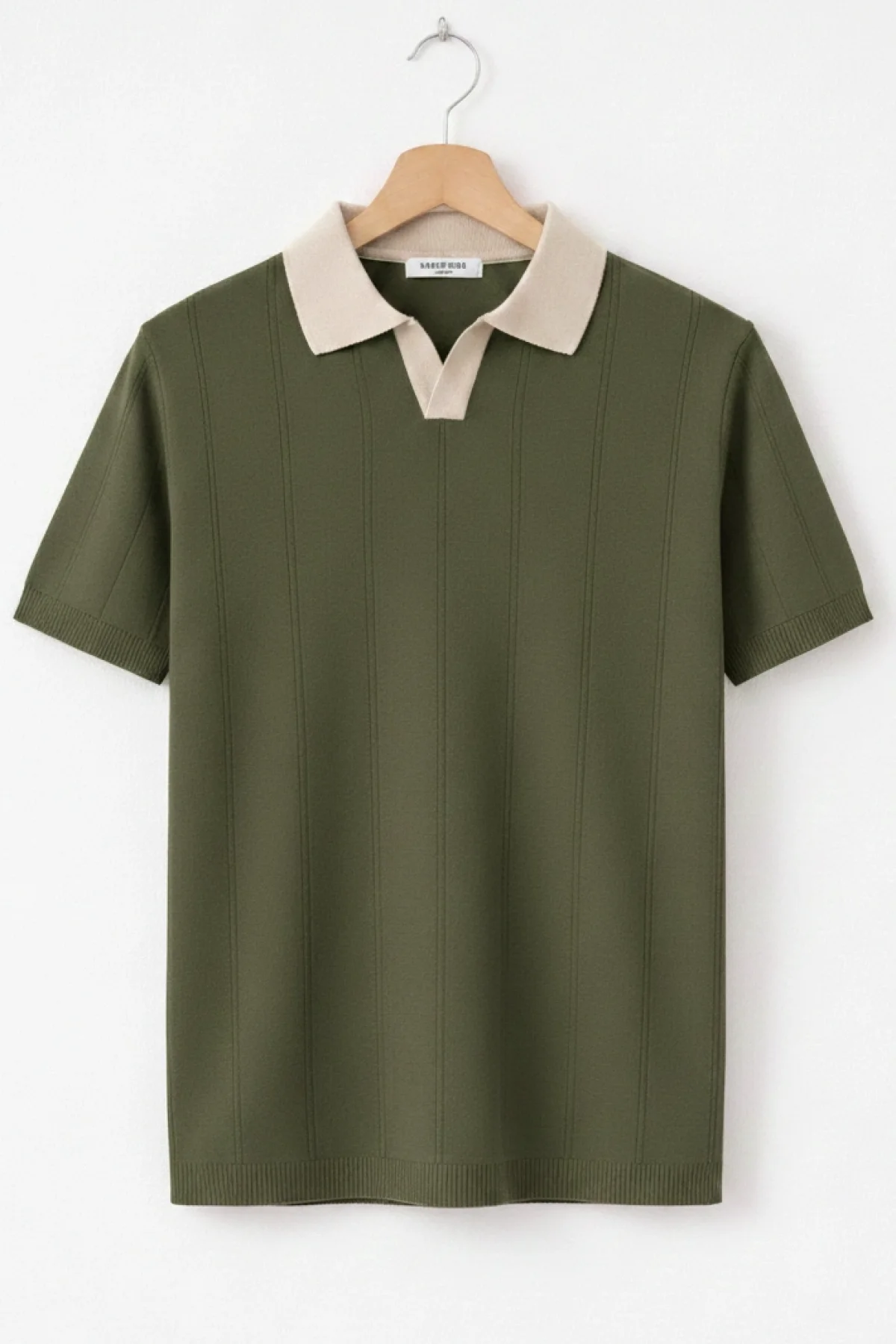 Erkek Yaka Desenli Triko Tişört Yeşil Cd165