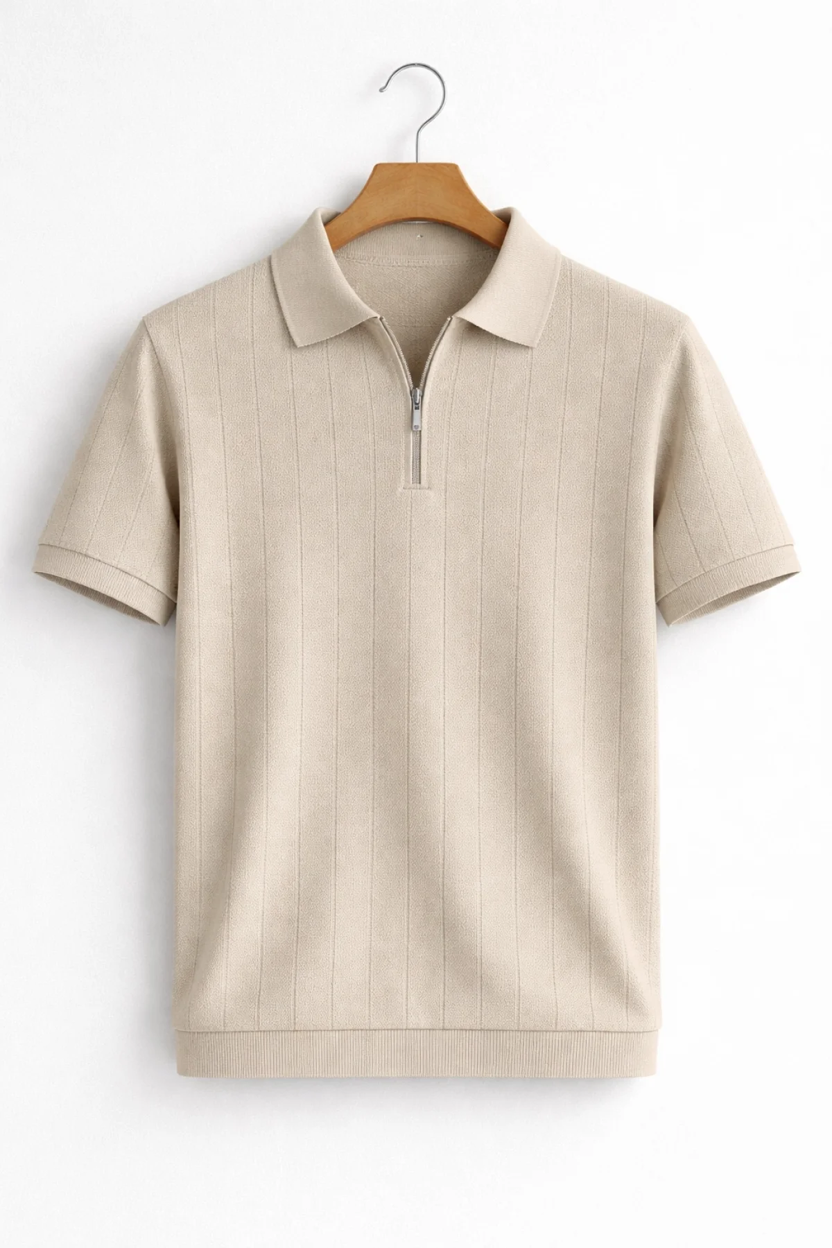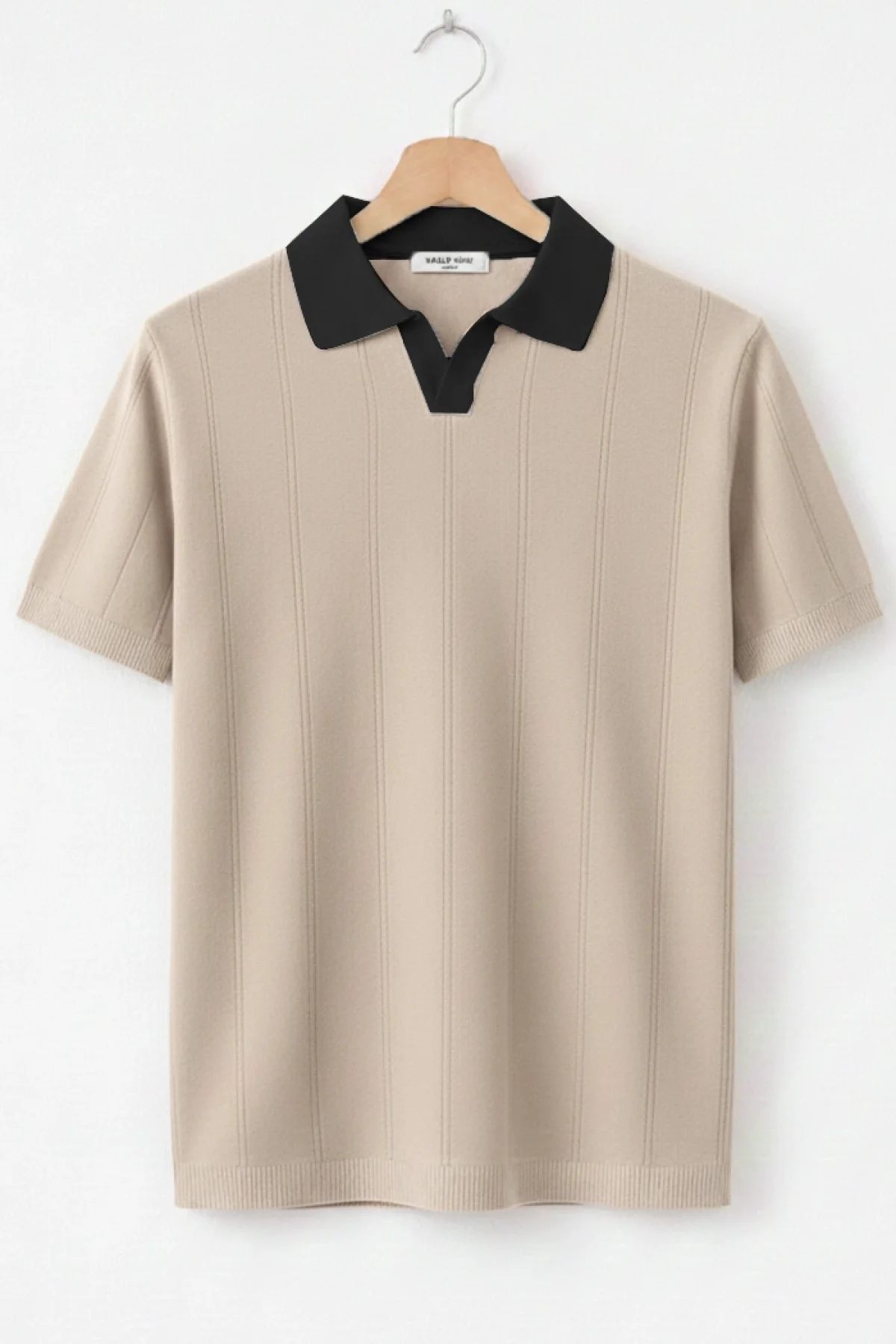 Erkek Yaka Desenli Triko Tişört Vizon Cd165