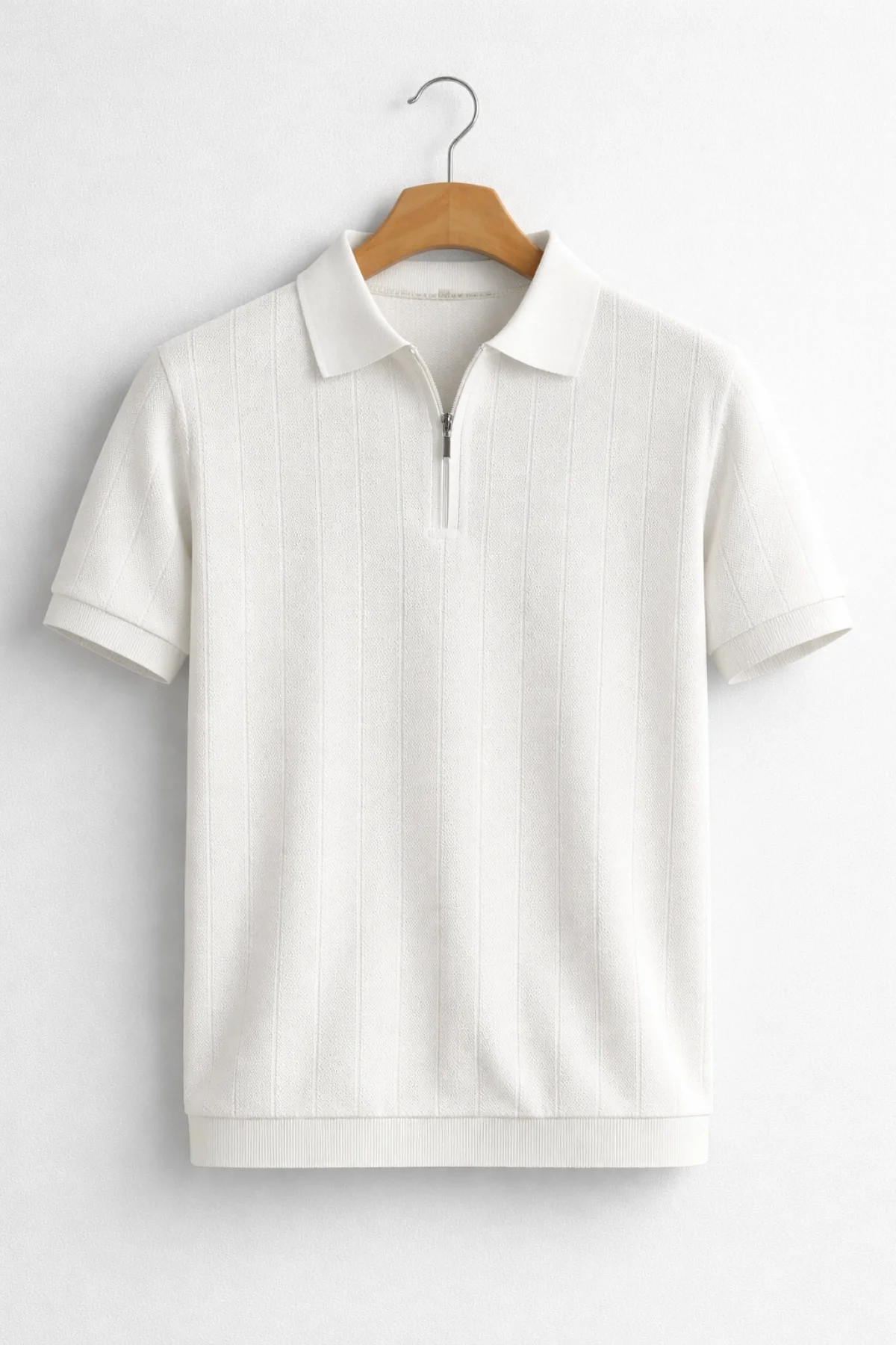 Erkek Nokta Desenli Polo Yaka Triko Tişört Beyaz Cd166
