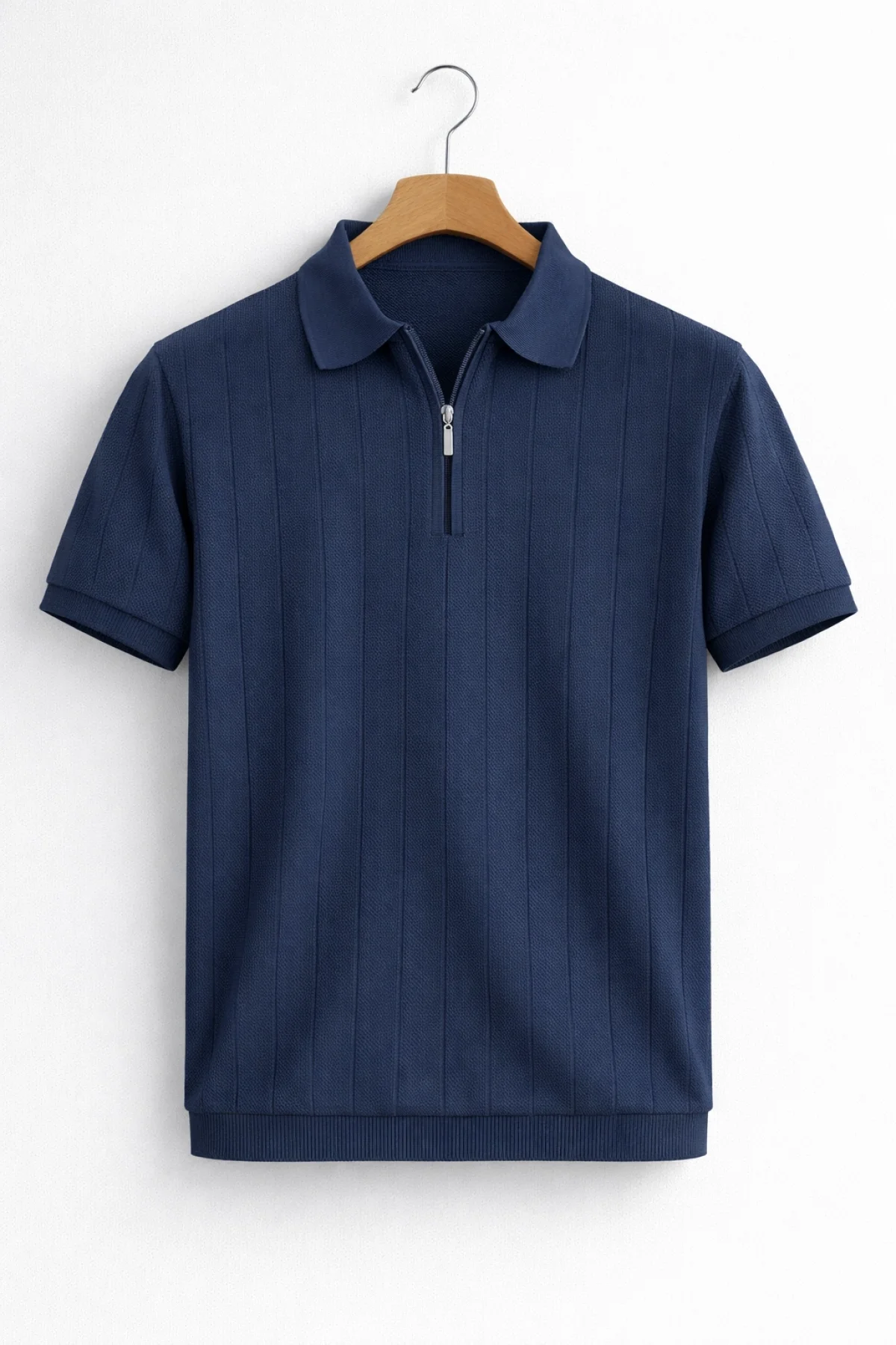 Erkek Nokta Desenli Polo Yaka Triko Tişört Lacivert Cd166
