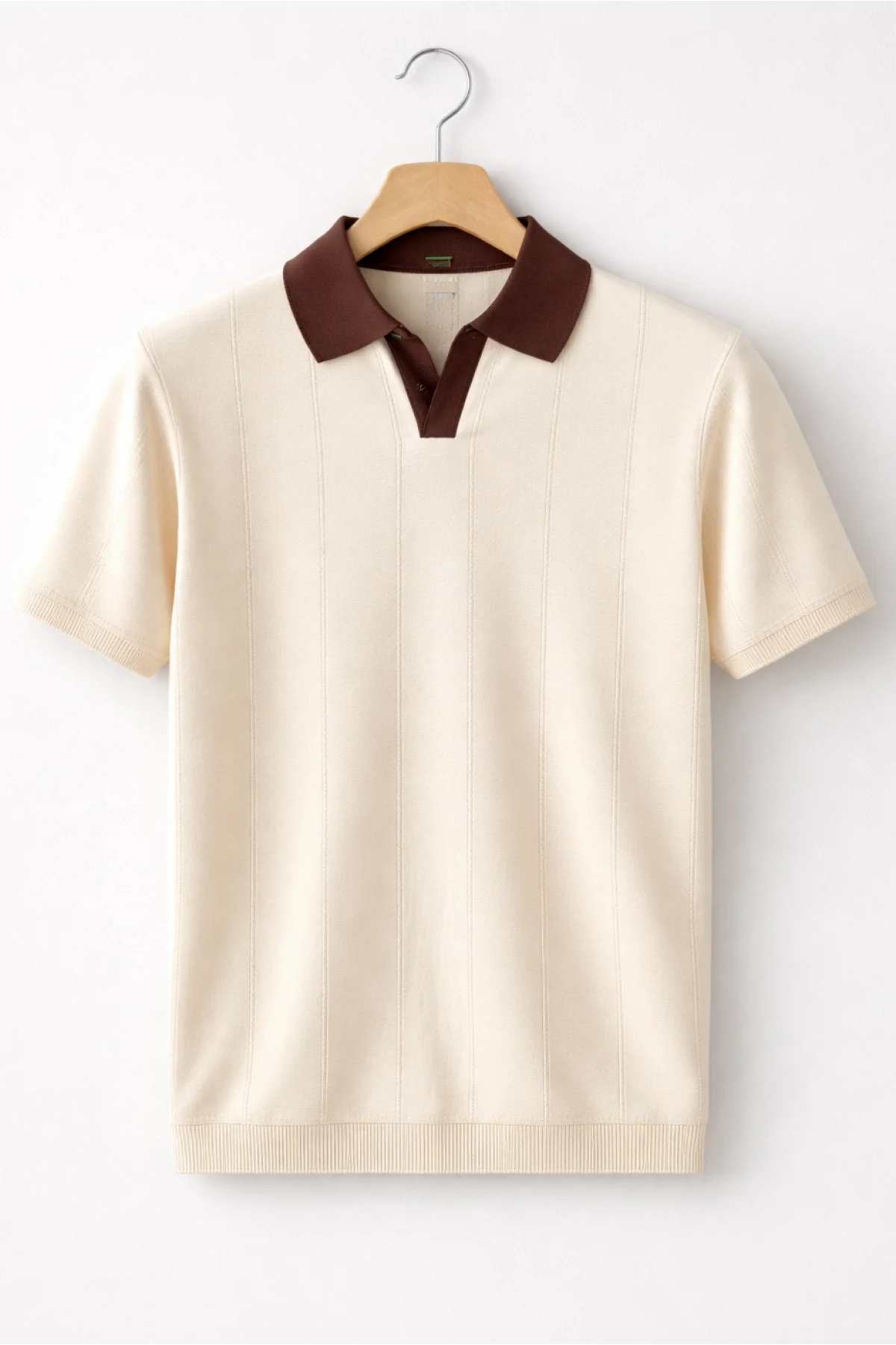 Erkek Yaka Desenli Triko Tişört Krem Cd165