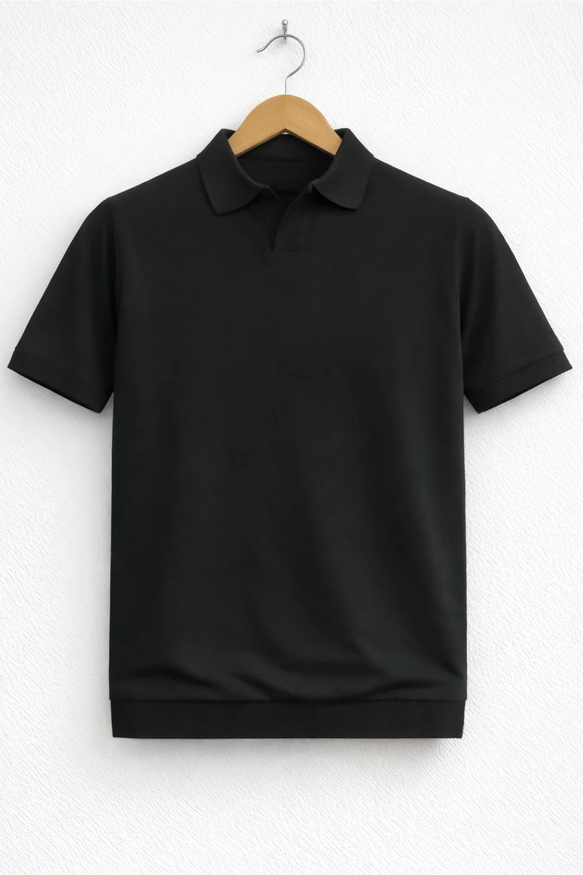 Erkek Açık Yaka Triko Tişört Siyah Cd103