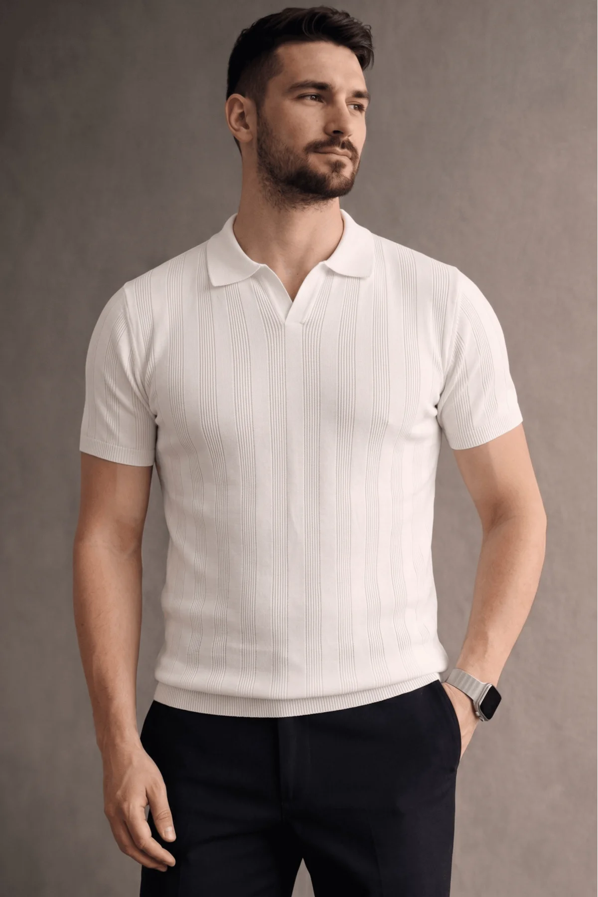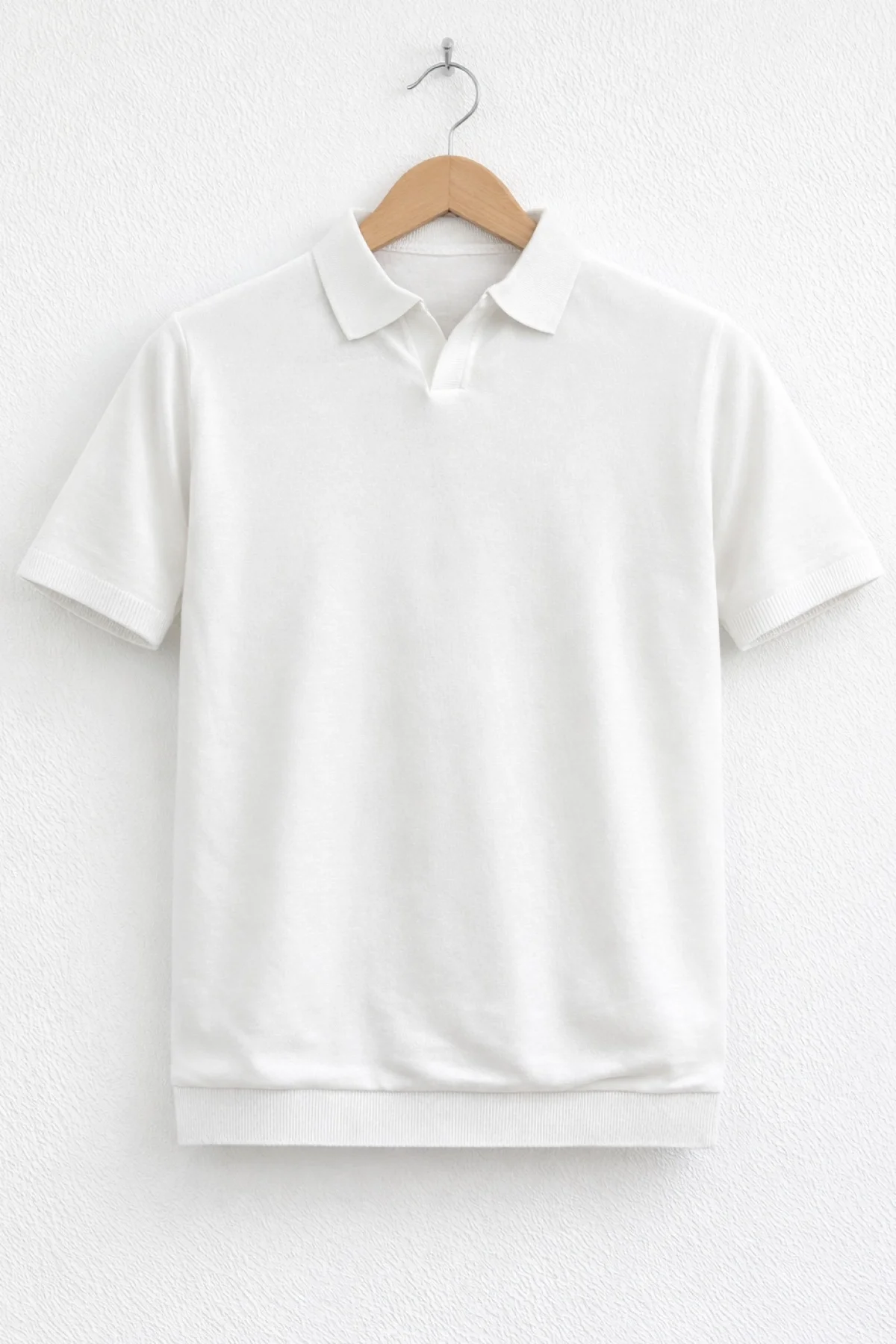 Erkek Açık Yaka Triko Tişört Beyaz Cd103
