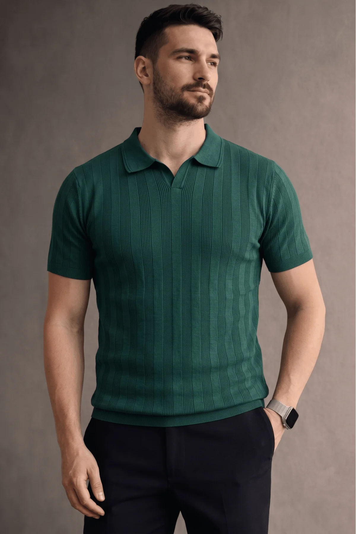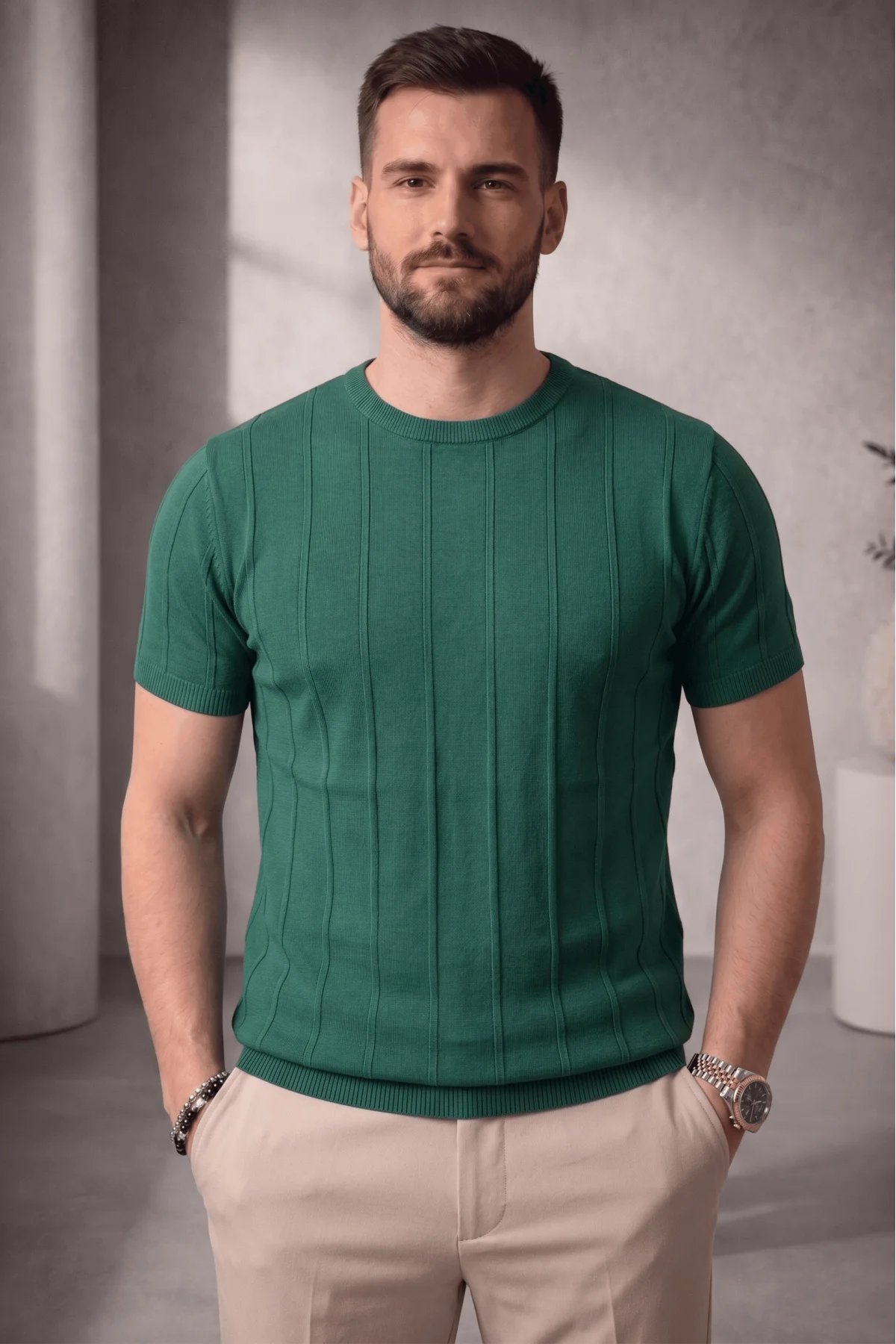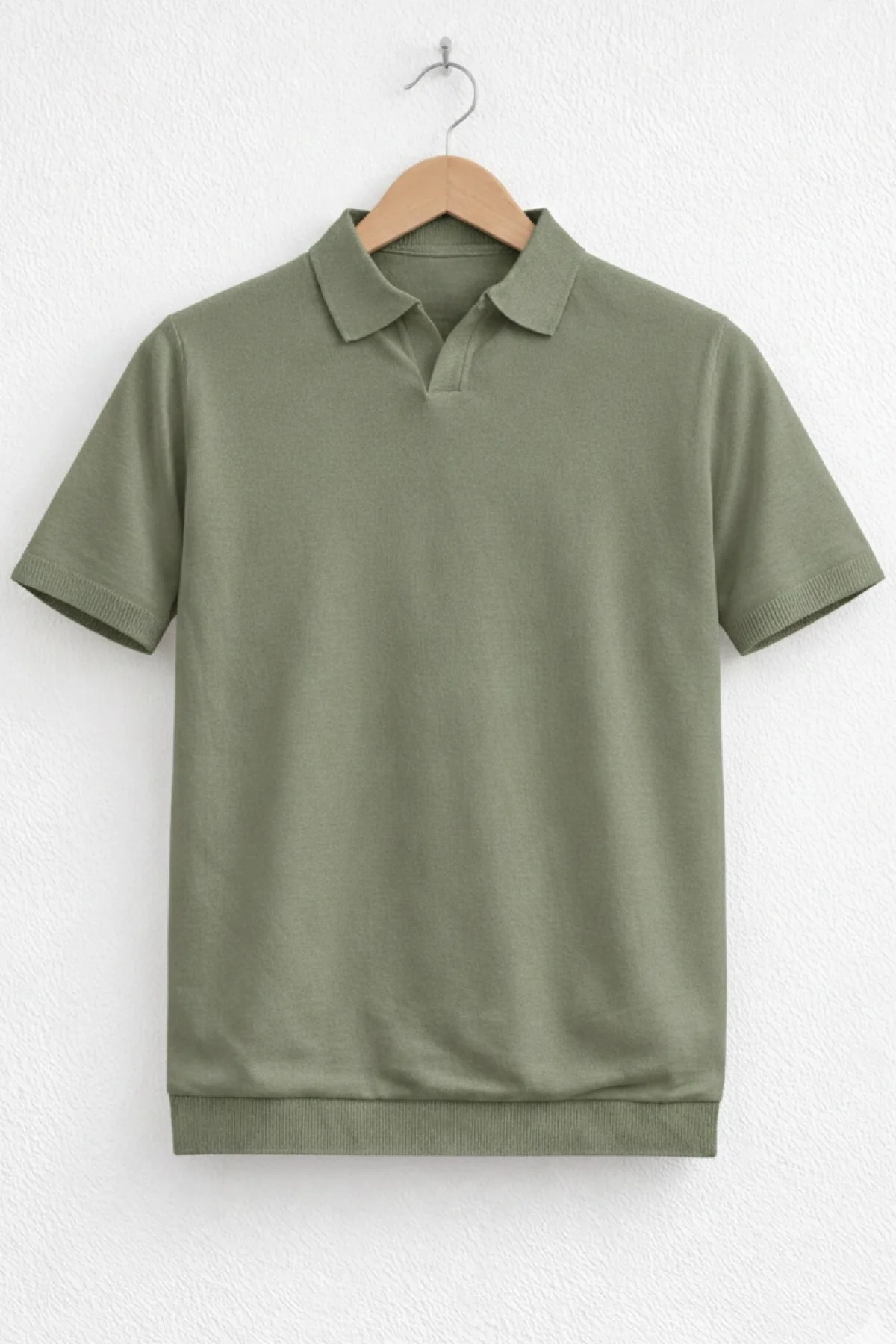 Erkek Açık Yaka Triko Tişört Yeşil Cd103