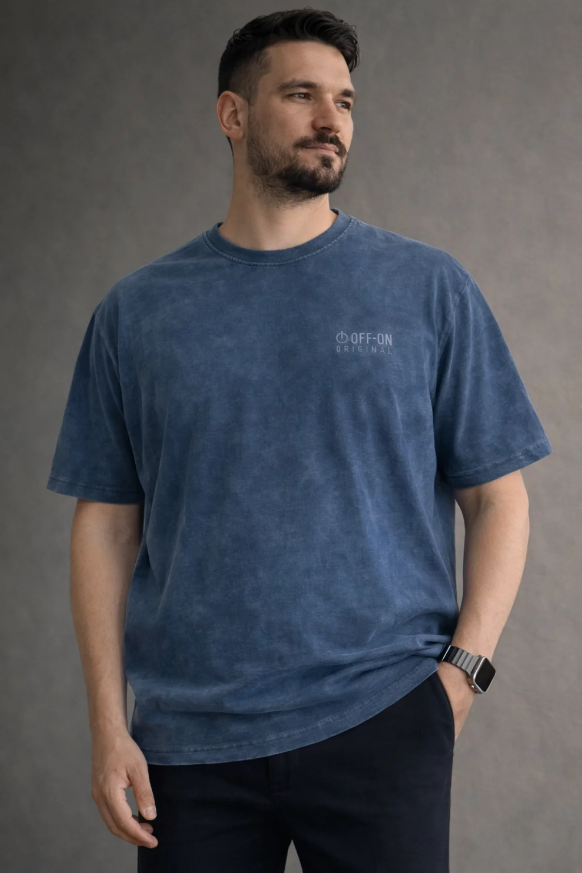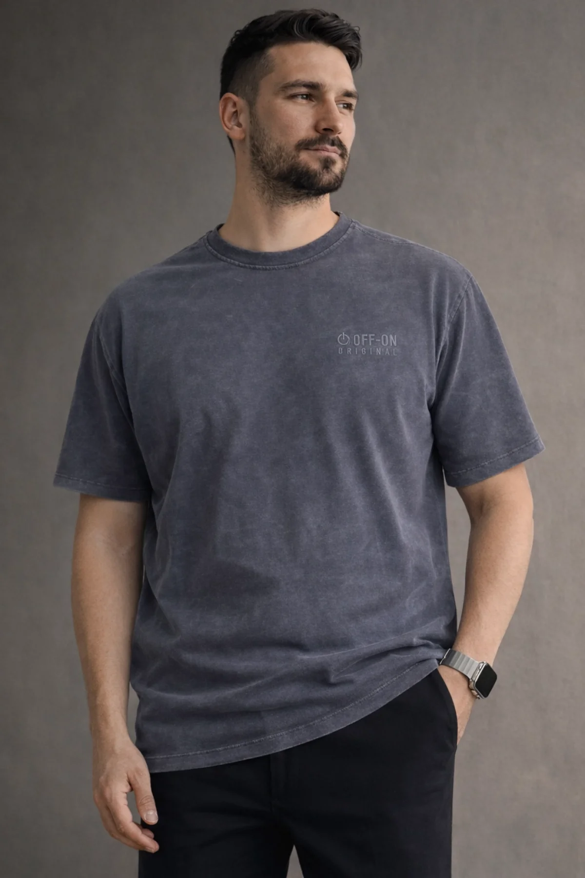 Erkek Yıkamalı Kumaş Premium Tişört Füme Cd104