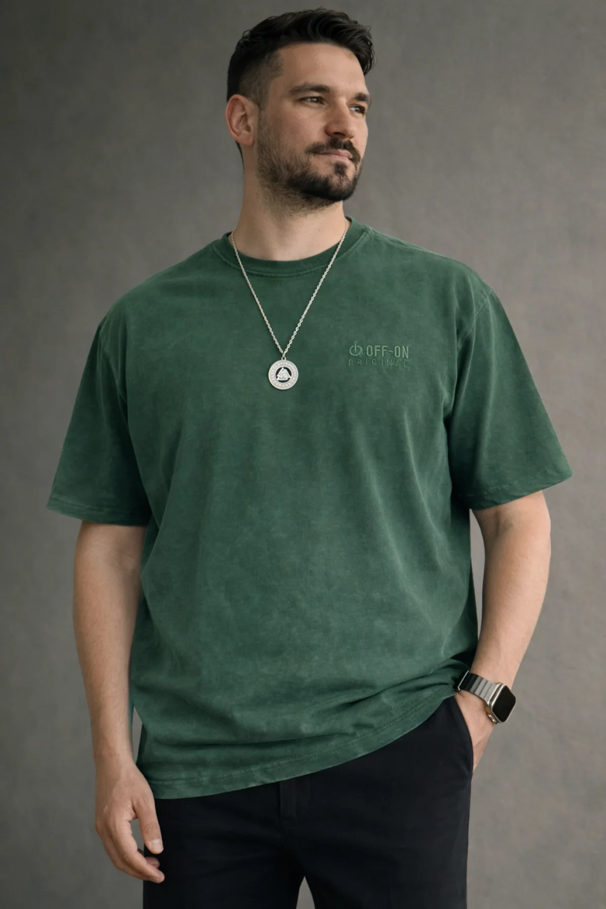 Erkek Yıkamalı Kumaş Premium Tişört Yeşil Cd104