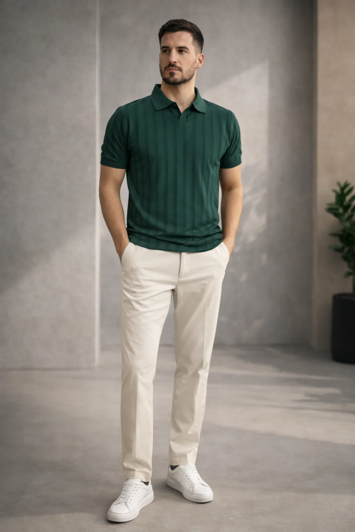 Erkek Bisiklet Yaka Çizgili Triko Tişört Yeşil Cd163