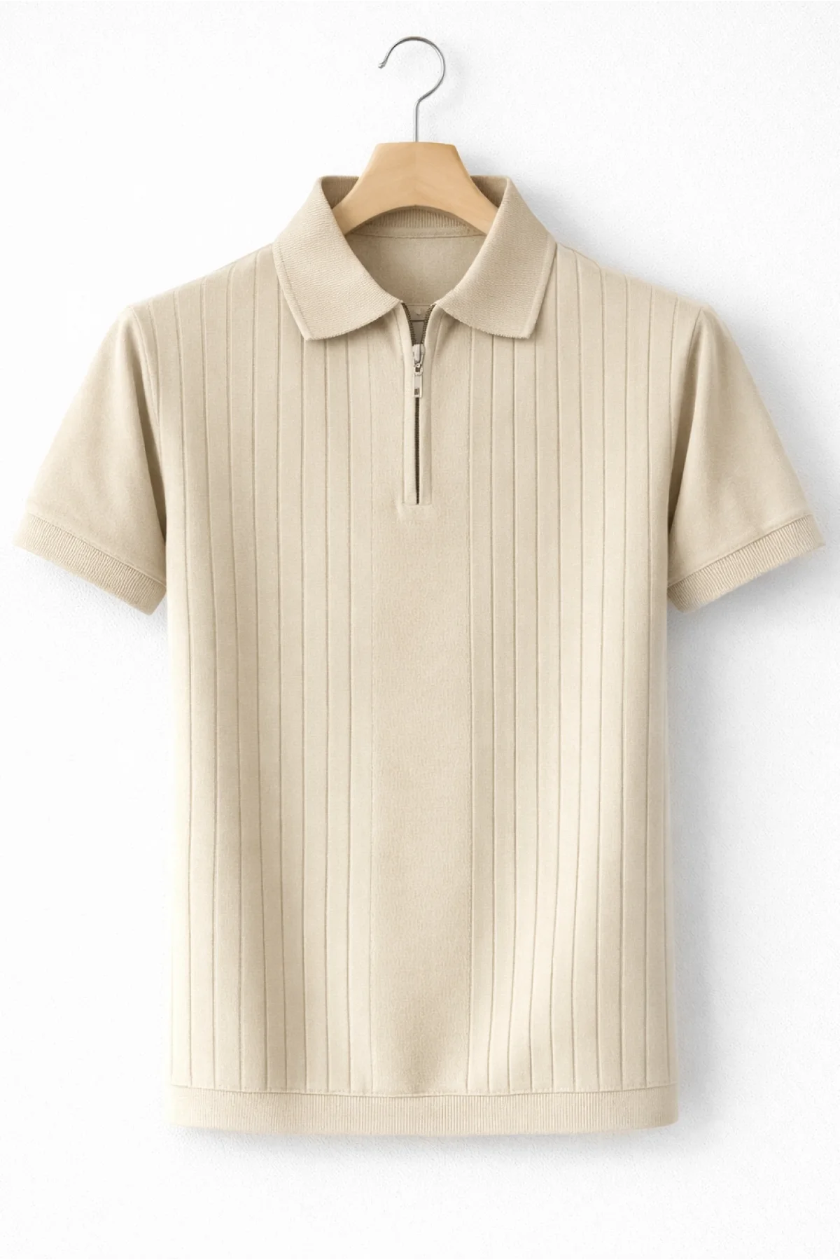 Erkek Yarım Fermuarlı Polo Yaka Normal Kalıp Kazak Krem Cd101