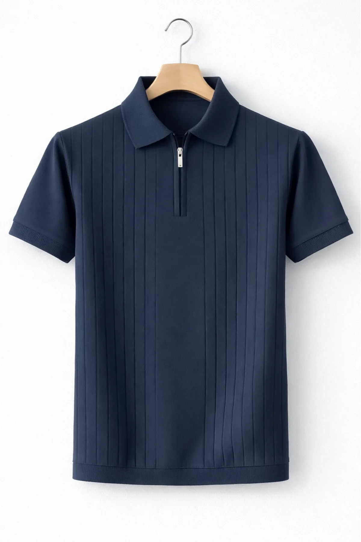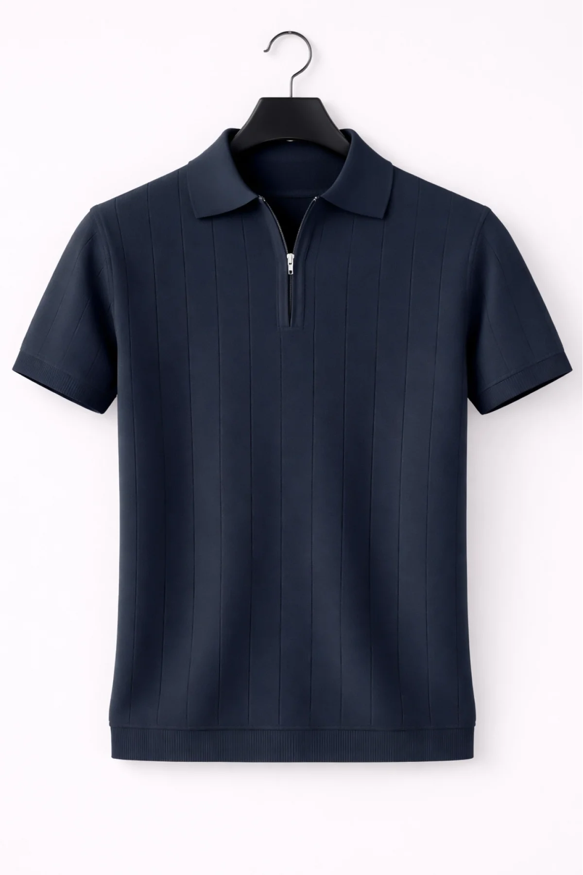 Erkek Çizgi Desenli Polo Yaka Triko Tişört Lacivert Cd168