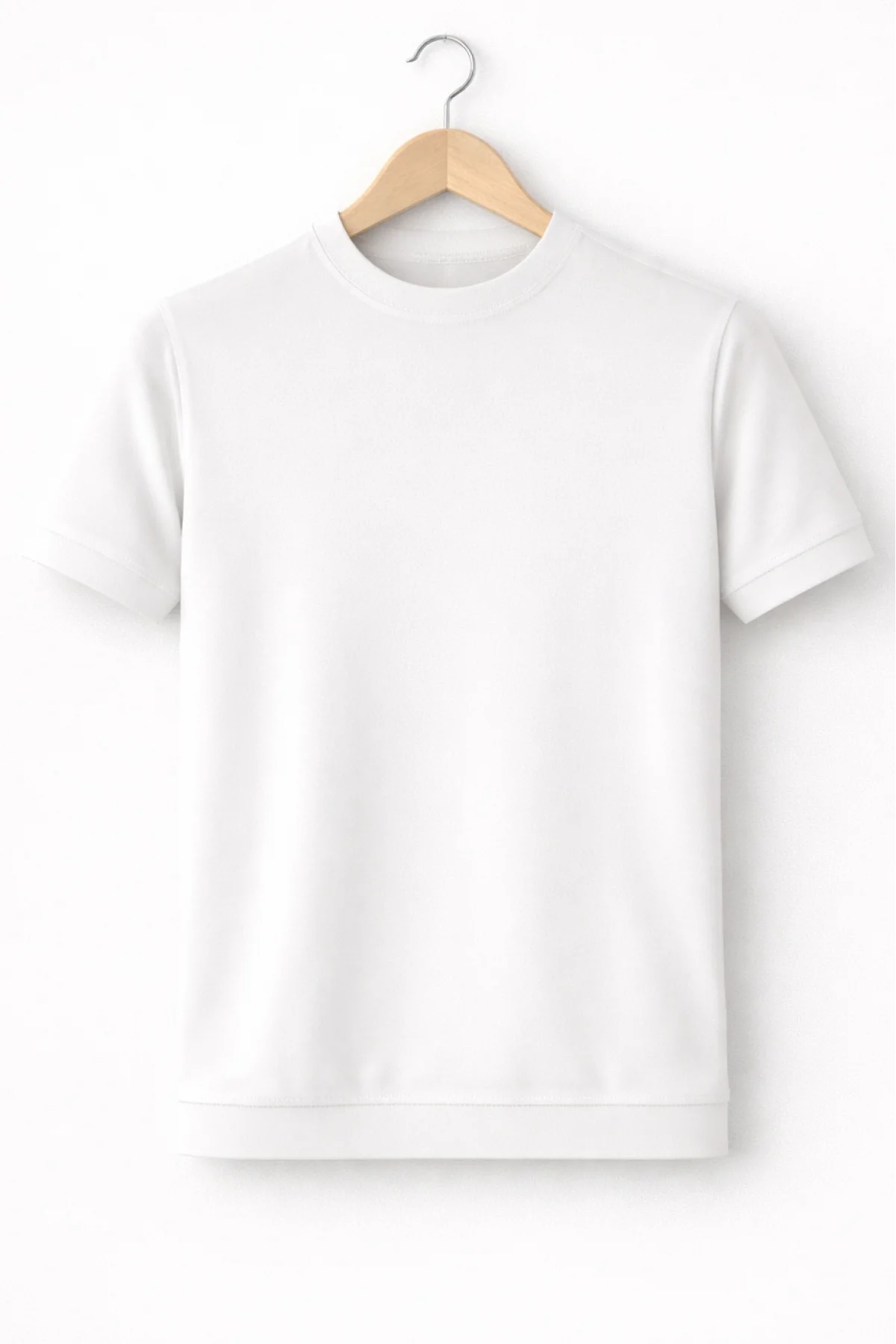Erkek Düz Bisiklet Yaka Triko Tişört Beyaz Cd169