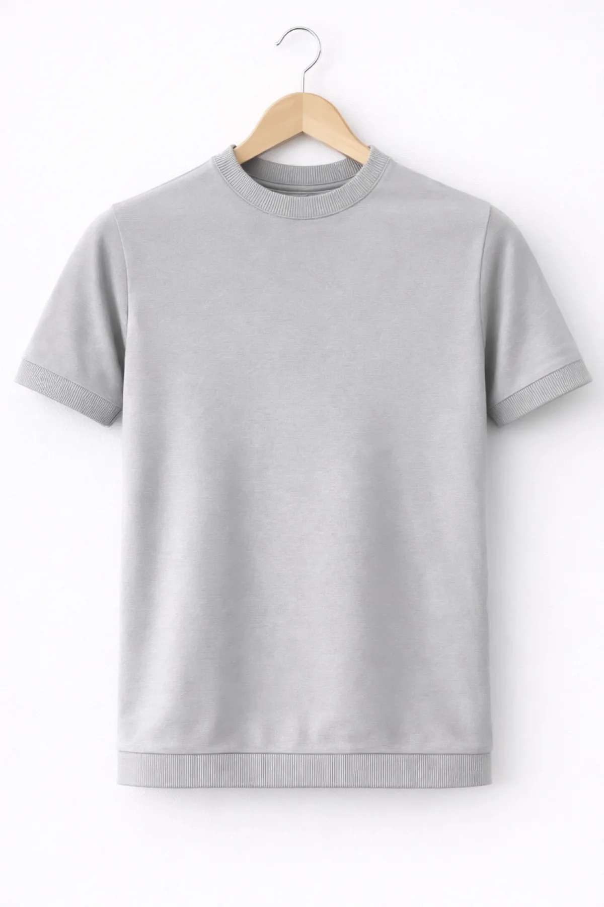 Erkek Düz Bisiklet Yaka Triko Tişört Gri Cd169