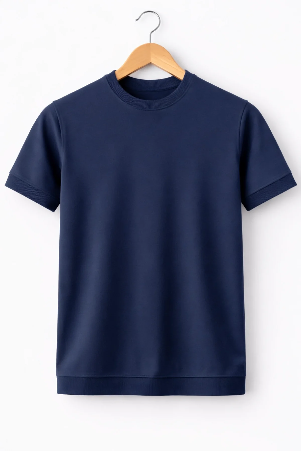 Erkek Düz Bisiklet Yaka Triko Tişört Lacivert Cd169