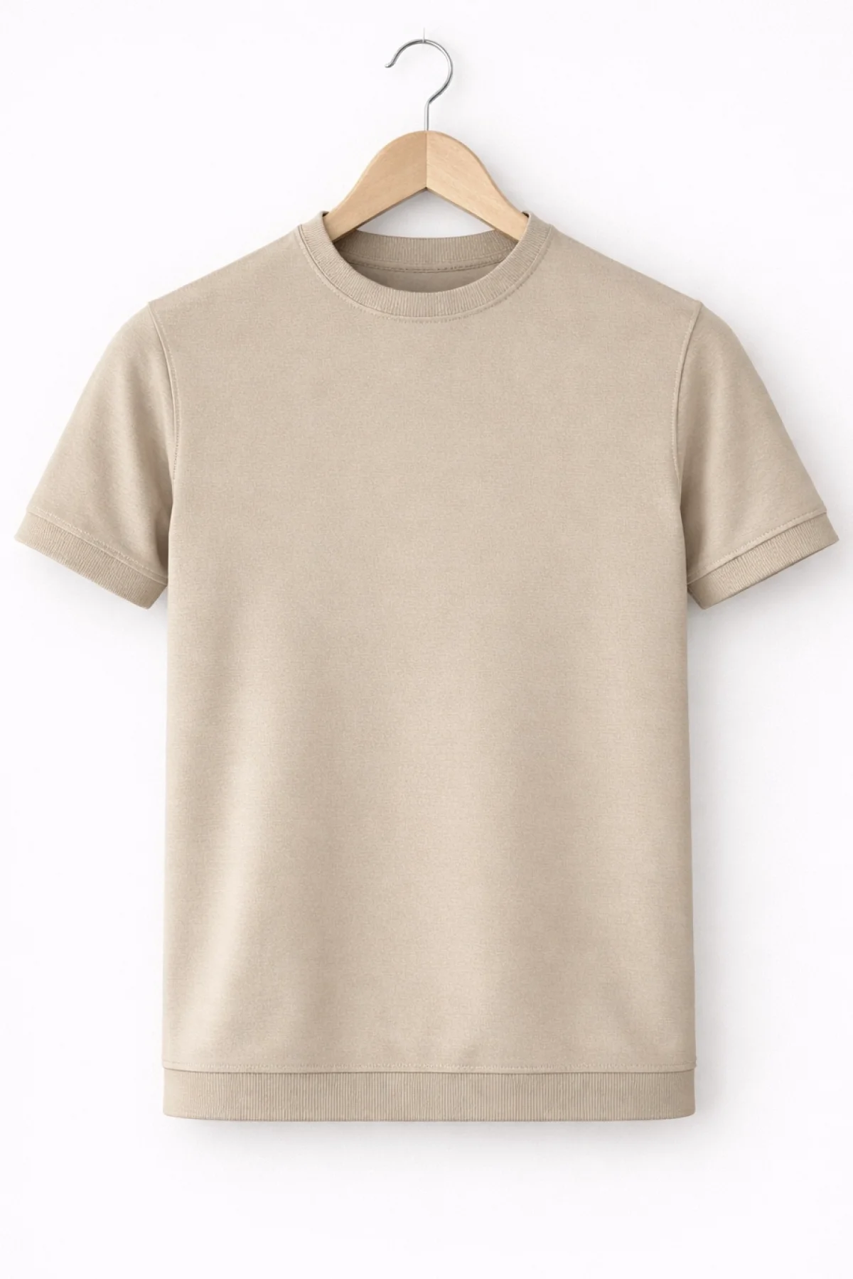Erkek Düz Bisiklet Yaka Triko Tişört Vizon Cd169