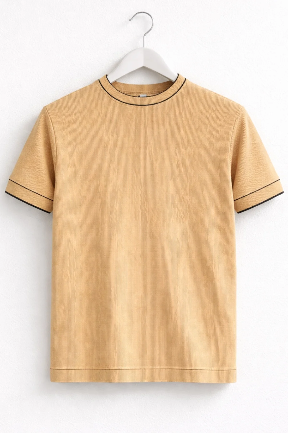 Erkek Düz Bisiklet Yaka Triko Tişört Açık Kahverengi Cd169