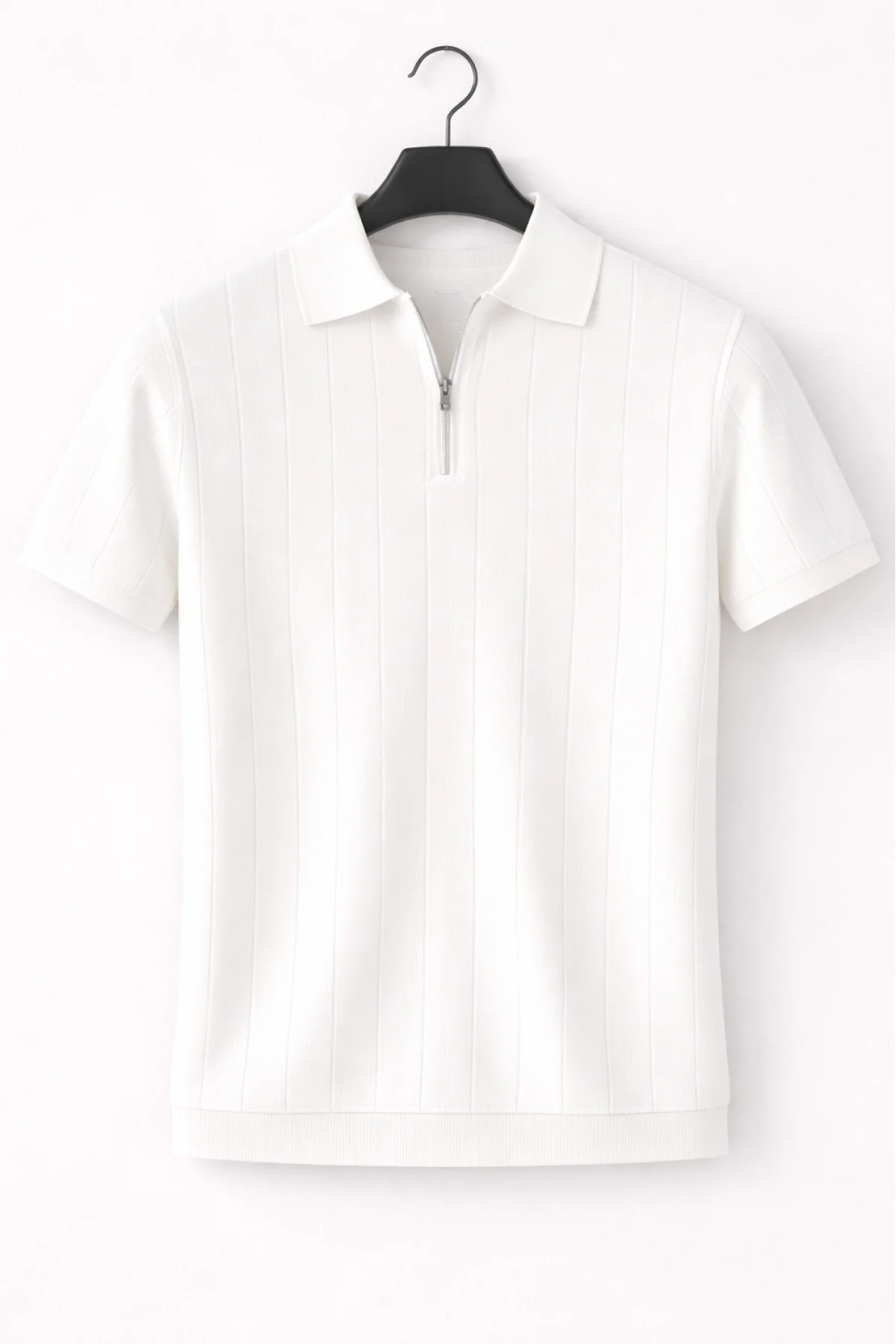 Erkek Polo Yaka Çizgili Triko Tişört Beyaz Cd171