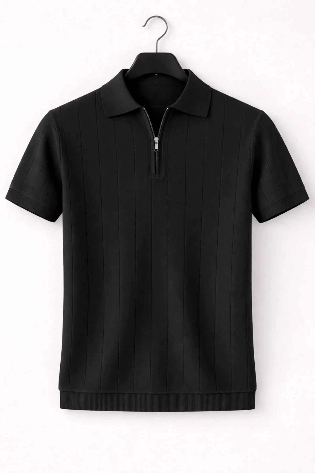 Erkek Yarım Fermuarlı Polo Yaka Normal Kalıp Kazak Siyah Cd101