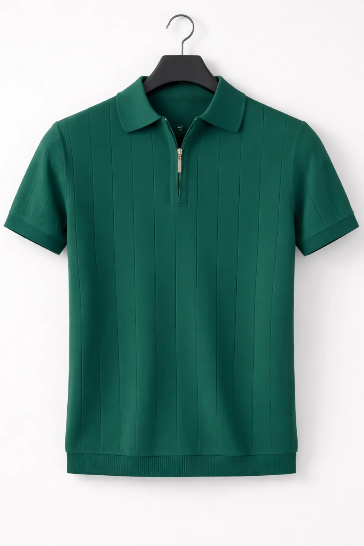 Erkek Çizgi Desenli Polo Yaka Triko Tişört Yeşil Cd168