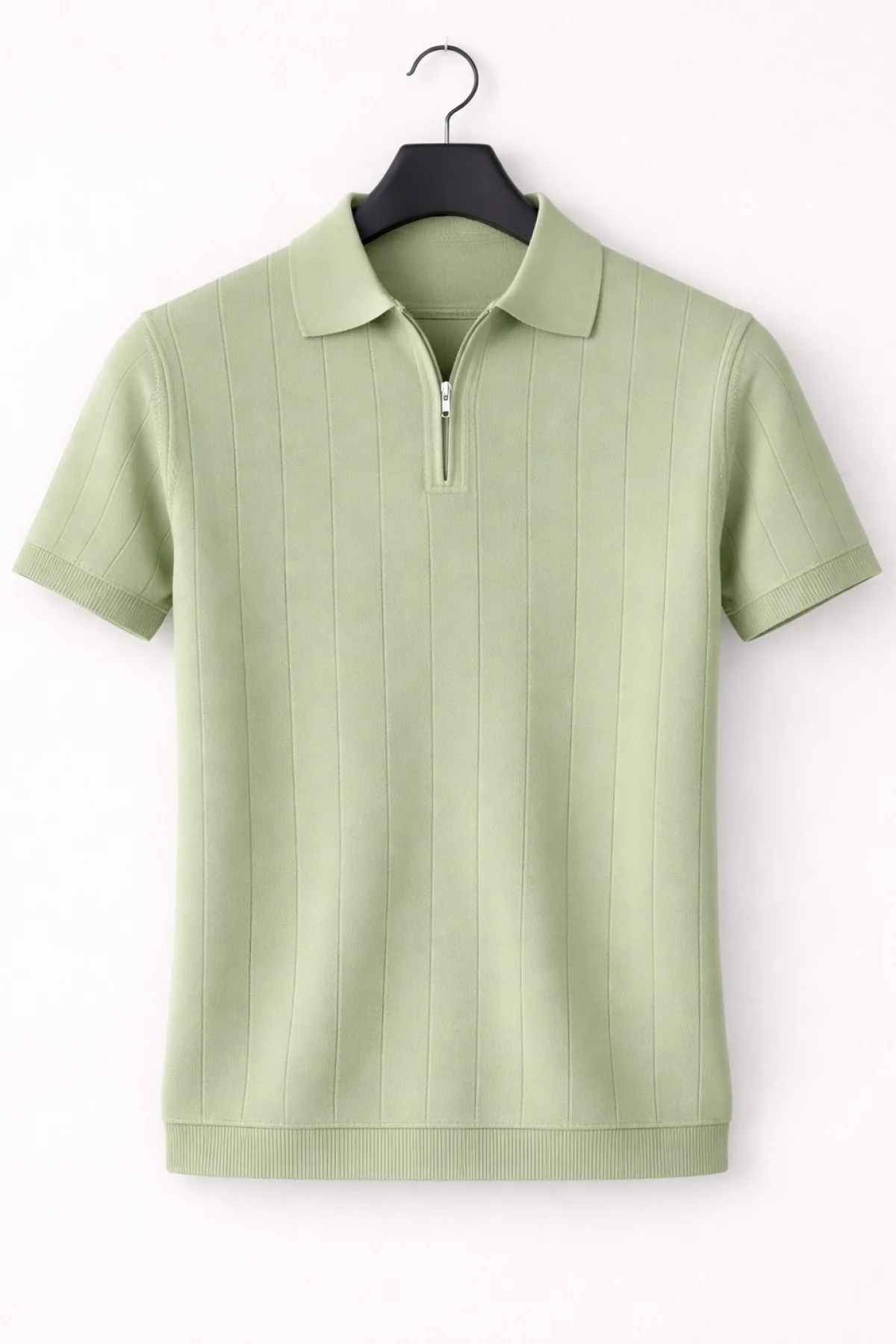 Erkek Polo Yaka Çizgili Triko Tişört Açık Yeşil Cd171