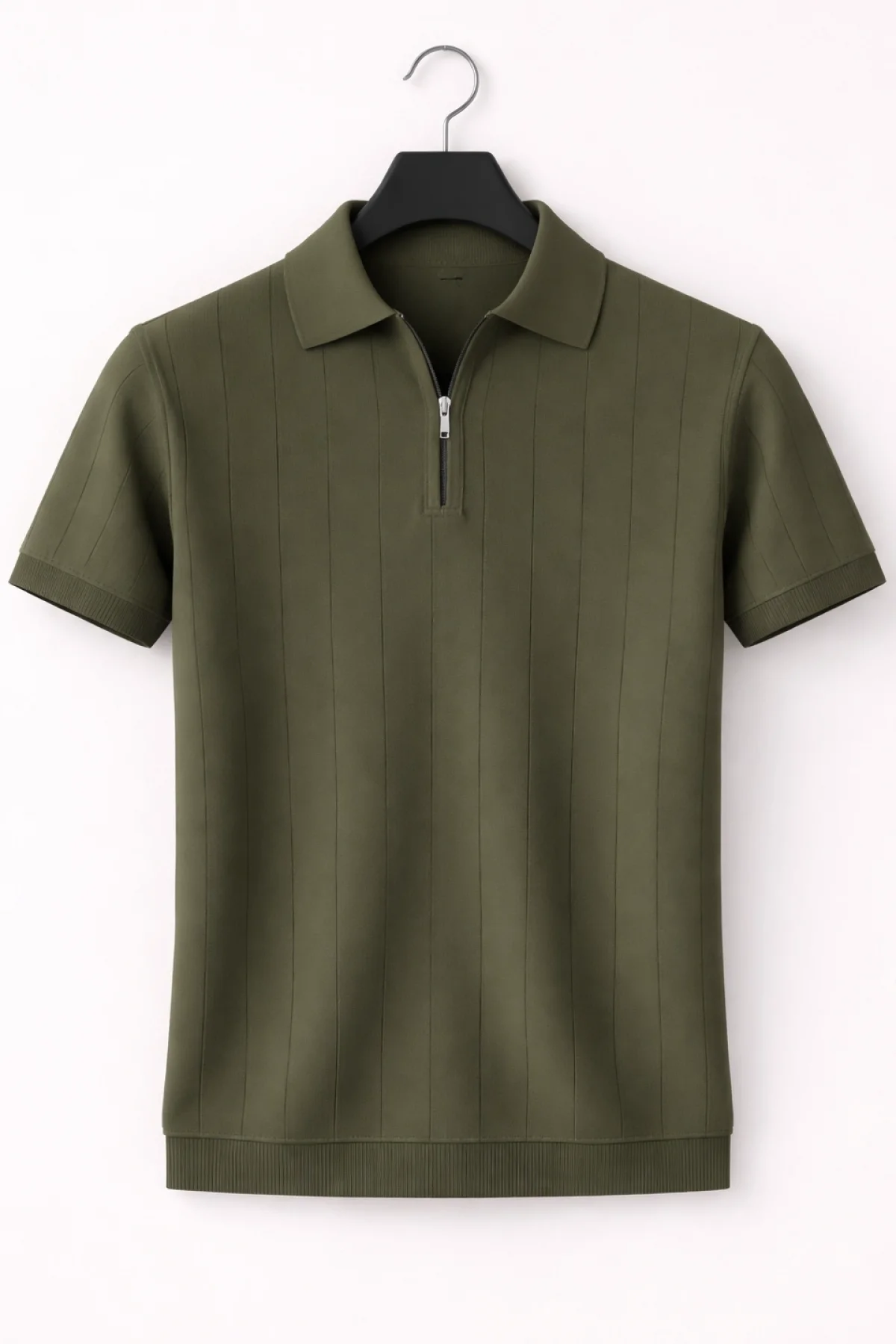 Erkek Polo Yaka Çizgili Triko Tişört Haki Cd171
