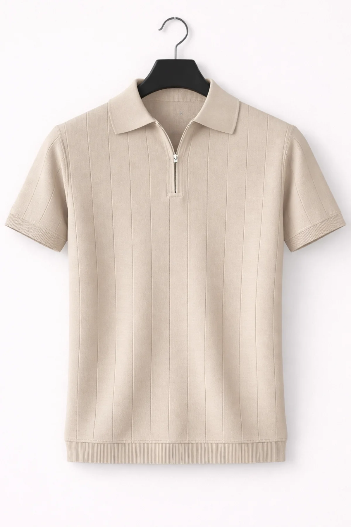 Erkek Çizgi Desenli Polo Yaka Triko Tişört Vizon Cd168